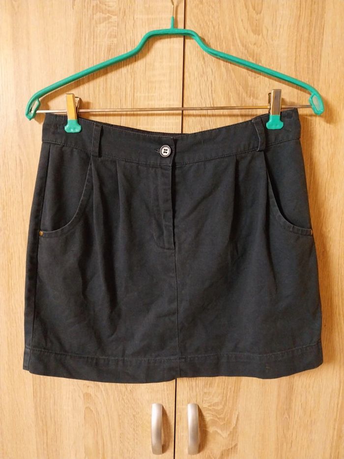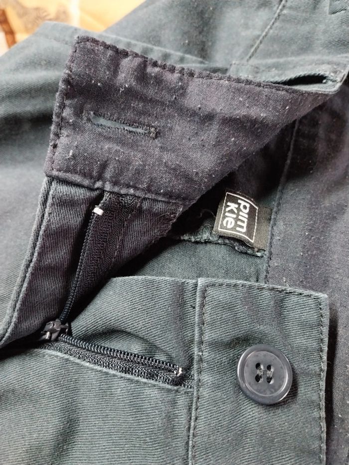 Jupe Pimkie taille 38 marine Bouton et braguette Poches latérales et fausses poches à l'arrière Bouloche légèrement à l'intérieur de la ceinture et étiquette coupée Largeur à la ceinture 38 cms Longueur 40 cms #gwen89350taille38