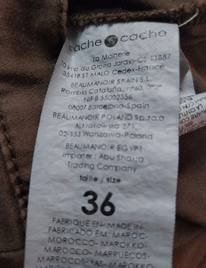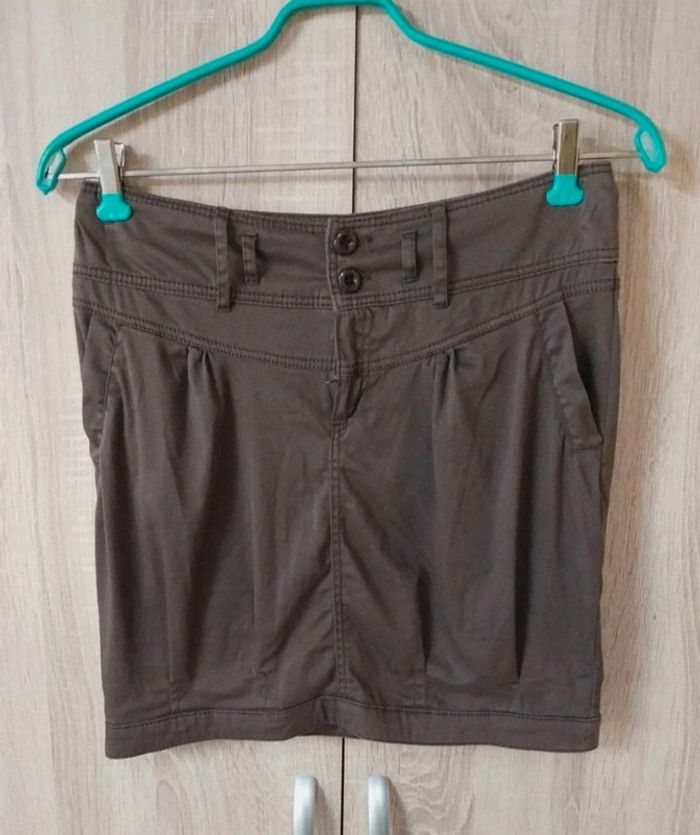 Jupe Cache Cache taille 36 marron Boutons et braguette Poches latérales et fausses poches à l'arrière Deux tailles de passants ceinture Longueur 38 cms env #gwen89350taille36