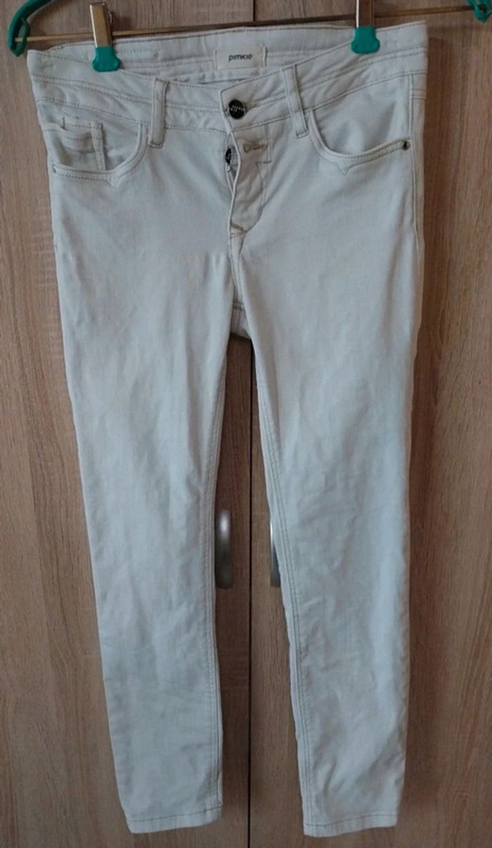 Jean Pimkie taille 32 blanc cassé Taille basse Poches latérales et à l'arrière Boutonnière et braguette Bien porté #gwen89350taille32