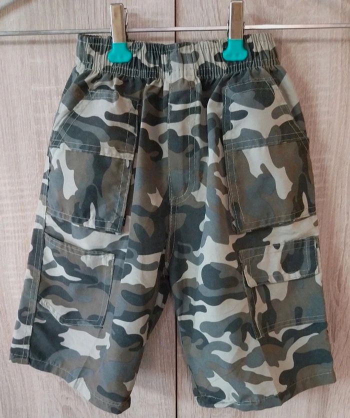 Bermuda taille 2 ans imprimé militaire Multipoches Avec braguette Élastiqué à la taille Très léger A enfiler #gwen89350taille24mois