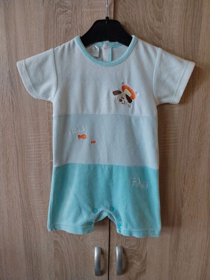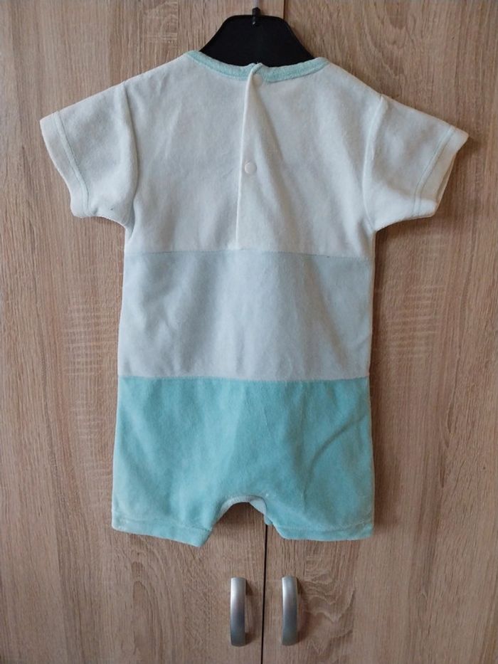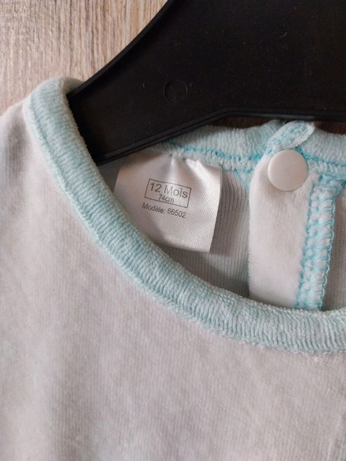 Pyjama 1 pièce taille 12 mois bleu et blanc Avec petits motifs devant Boutons pressions au dos et à l'entre jambe Matière type velours #gwen89350taille12mois