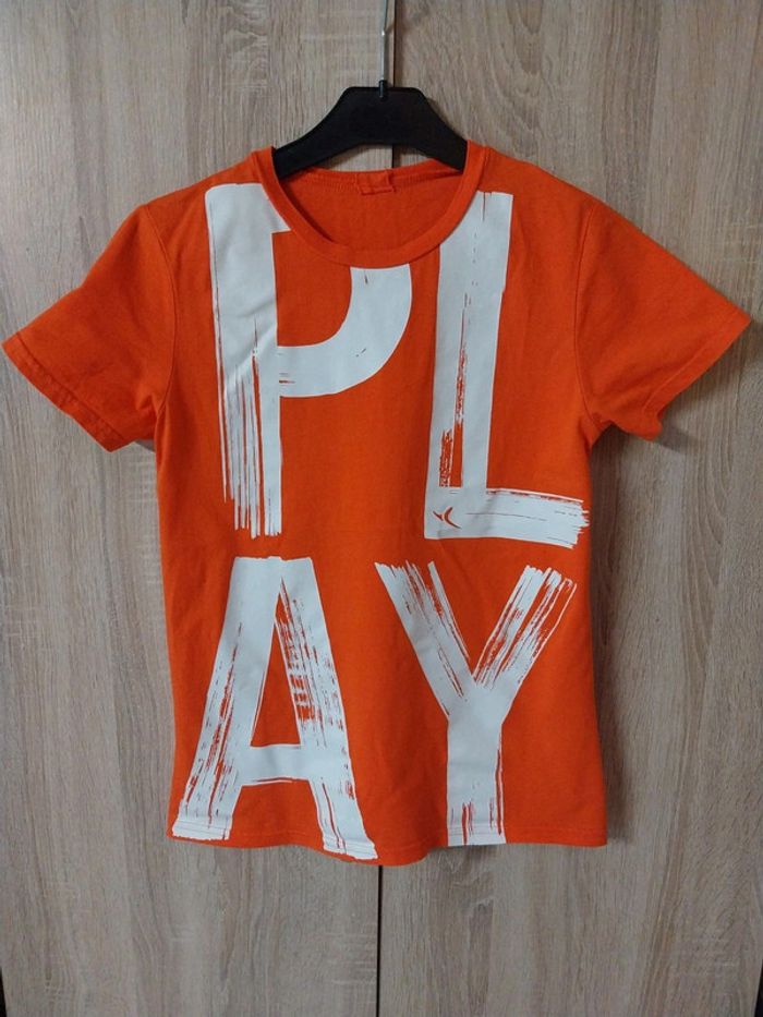 Tee-shirt Kiabi taille 13/14 ans orange et blanc Étiquette coupée #gwen89350taille14ans