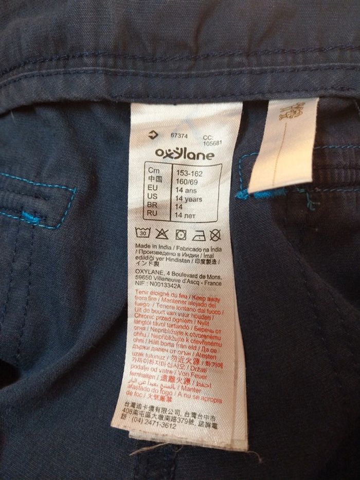 Bermuda Oxylane taille 14 ans mais plutôt 12/13 ans marine et bleu Multipoches Réglable à la taille Bouton pression et braguette Beaucoup porté donc un peu délavé et un défaut de peinture sur un bouton #gwen89350taille14ans #gwen89350taille12ans