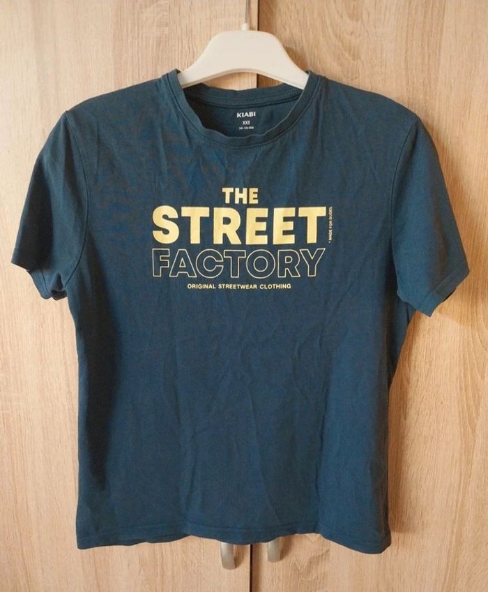 Tee-shirt Kiabi taille 11/12 ans marine et jaune Bien porté donc col légèrement détendu et étiquette de composition coupée #gwen89350taille12ans