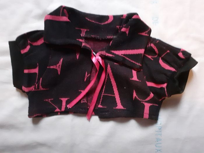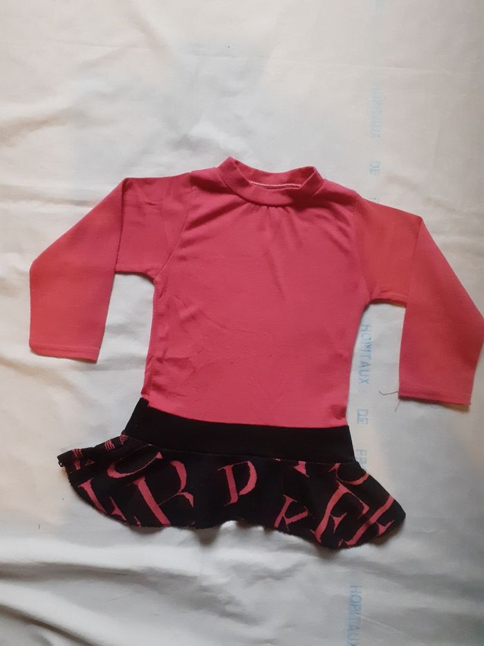 Ensemble robe framboise et noir, boléro et béret assortis 6 mois