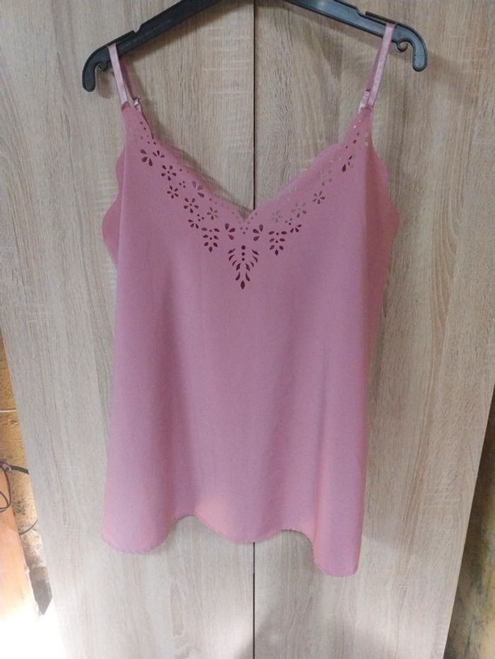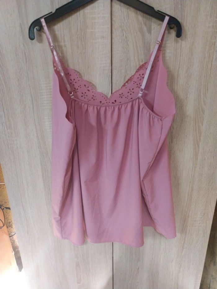 Débardeur taille unique rose Fluide Le taille unique doit correspondre à du 50/52 , je fais du 48 et il est trop grand malheureusement Reglable aux bretelles et élastique dans le dos donc peut tailler encore plus grand Largeur d'aisselles à aisselles et élastique détendu 50 cms environ #gwen89350taille50