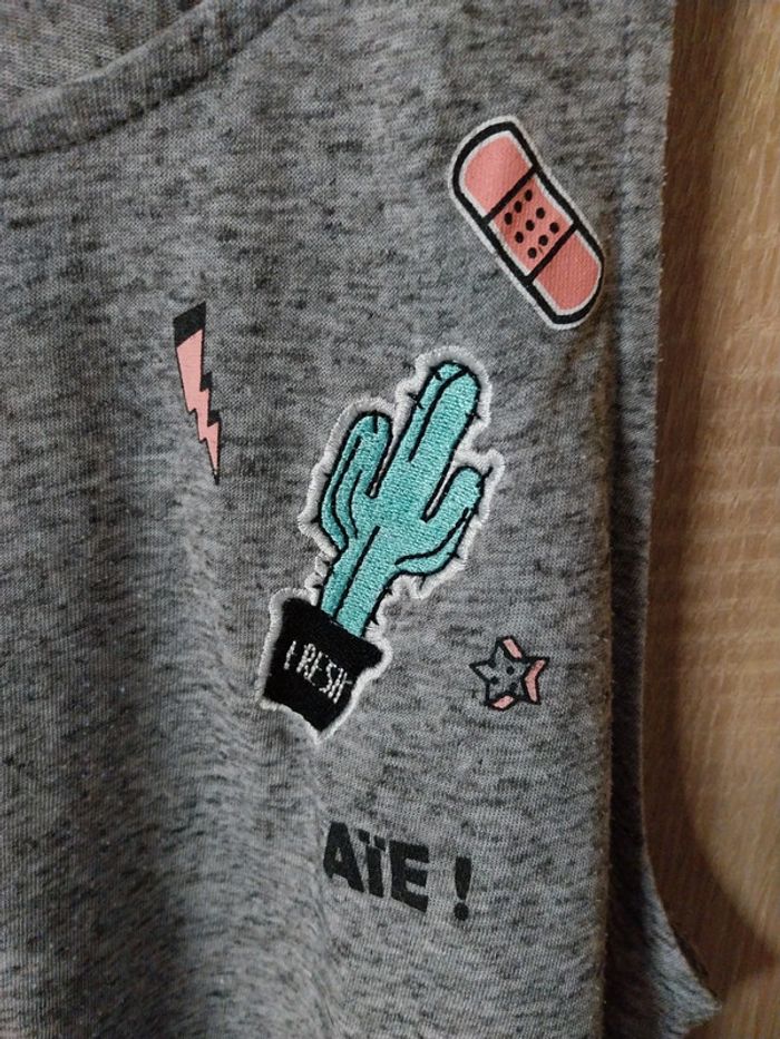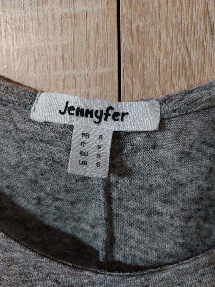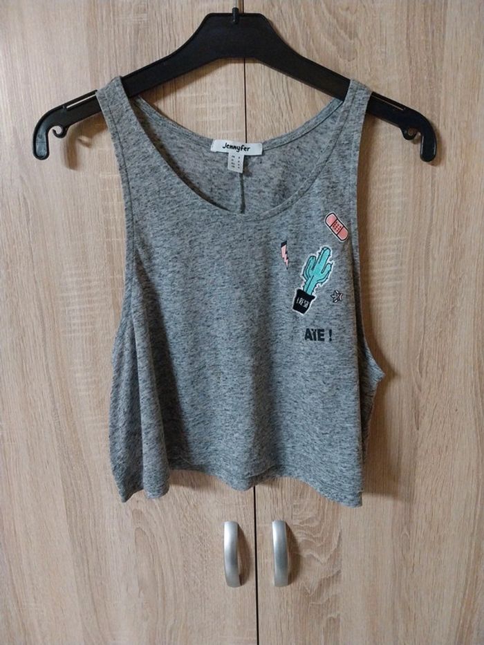 Crop top Jennyfer taille S gris avec motifs Bien porté donc bouloche légèrement et étiquette de composition coupée #gwen89350taille36
