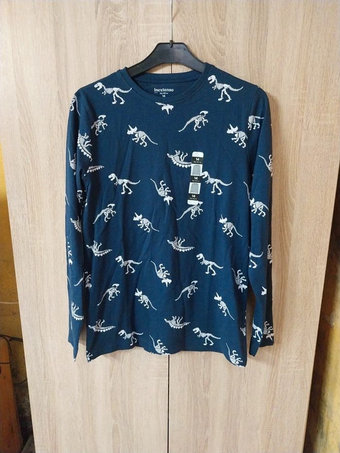 Haut de pyjama In extenso taille 14 ans marine à motifs blancs dinausaures 100% coton Neuf juste essayé #gwen89350taille14ans