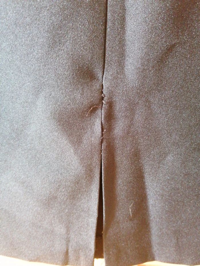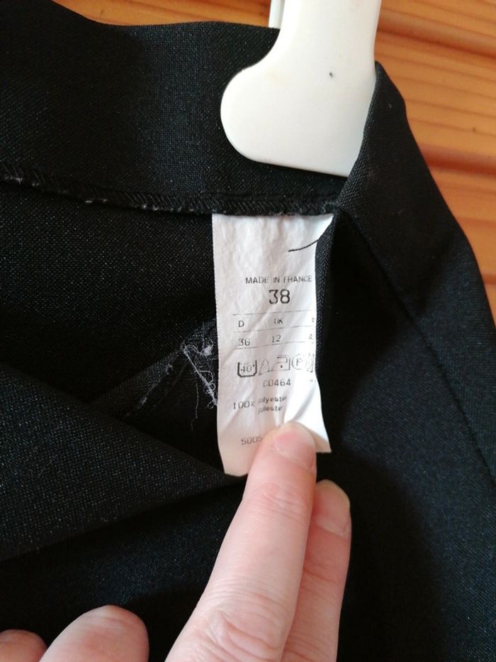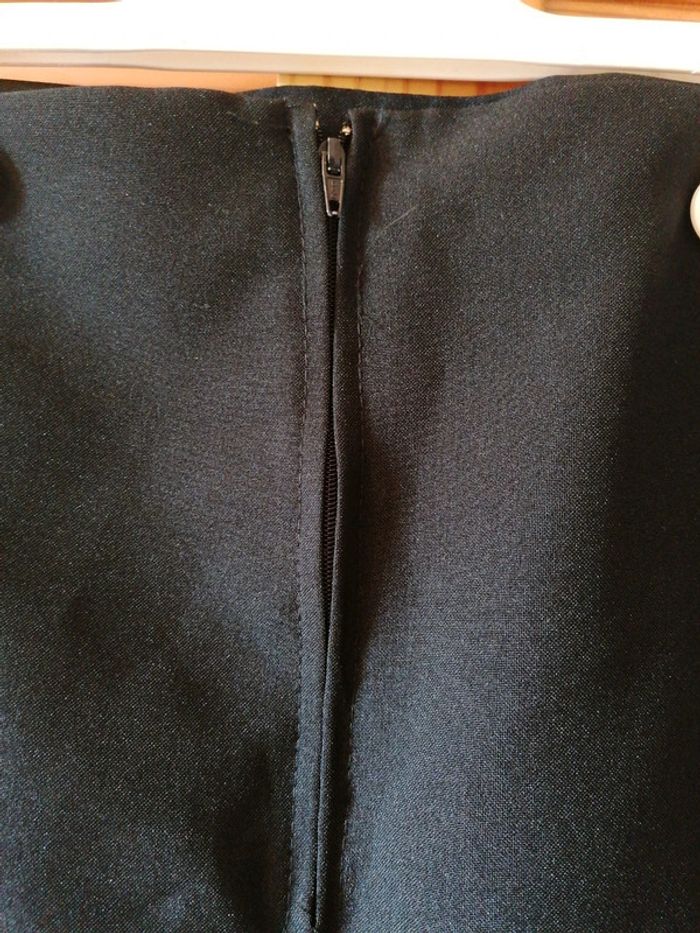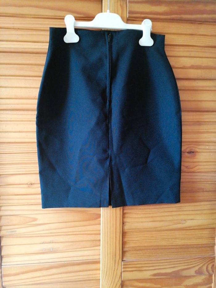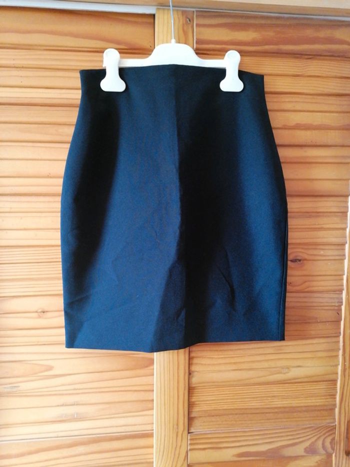 Jupe courte taille 38 noire Fente et fermeture éclair à l'arrière Matière synthétique Longueur totale 50 cm environ Défaut de couture a l'arrière (photo) #gwen89350taille38