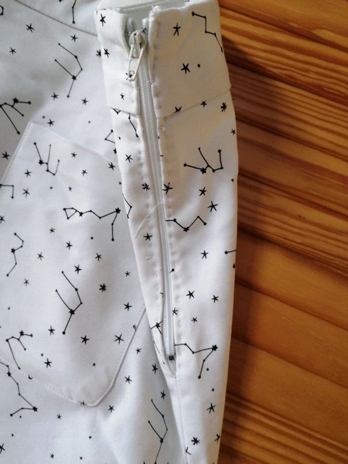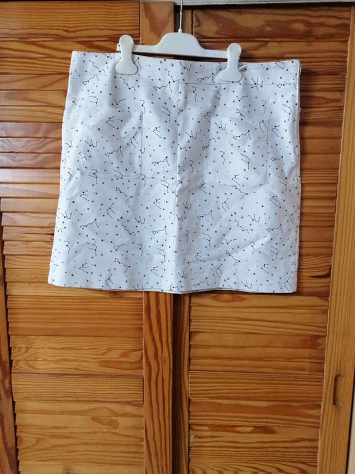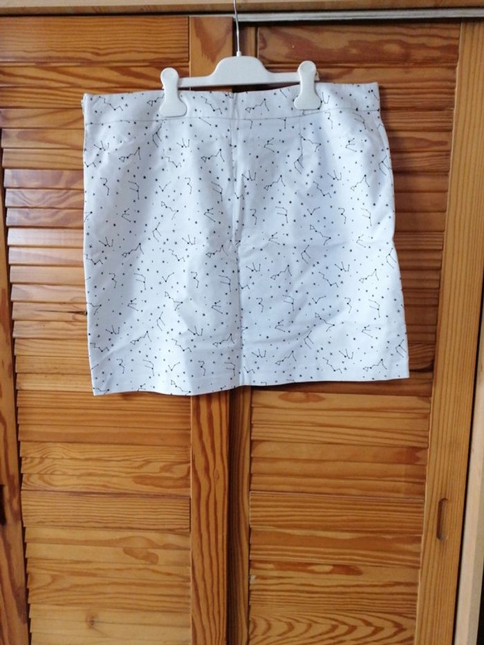 Jupe Kiabi taille 46 blanche à motifs astromie noir Longueur env 49 cms Matière synthétique Poches et fermeture par fermeture éclair Peu porté Seul défaut fermeture éclair changée (photo) #gwen89350taille46