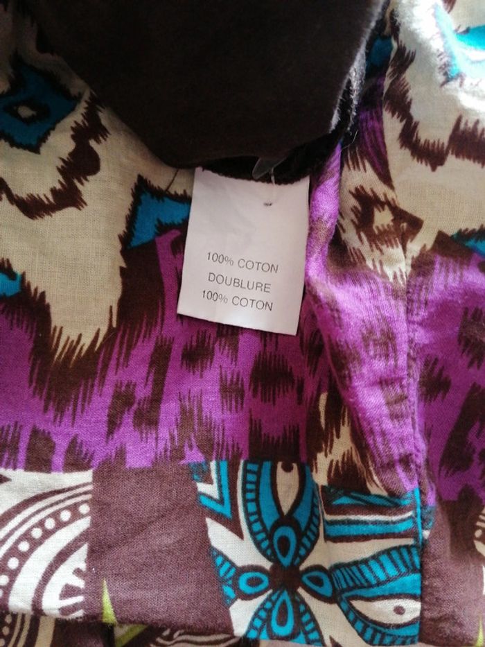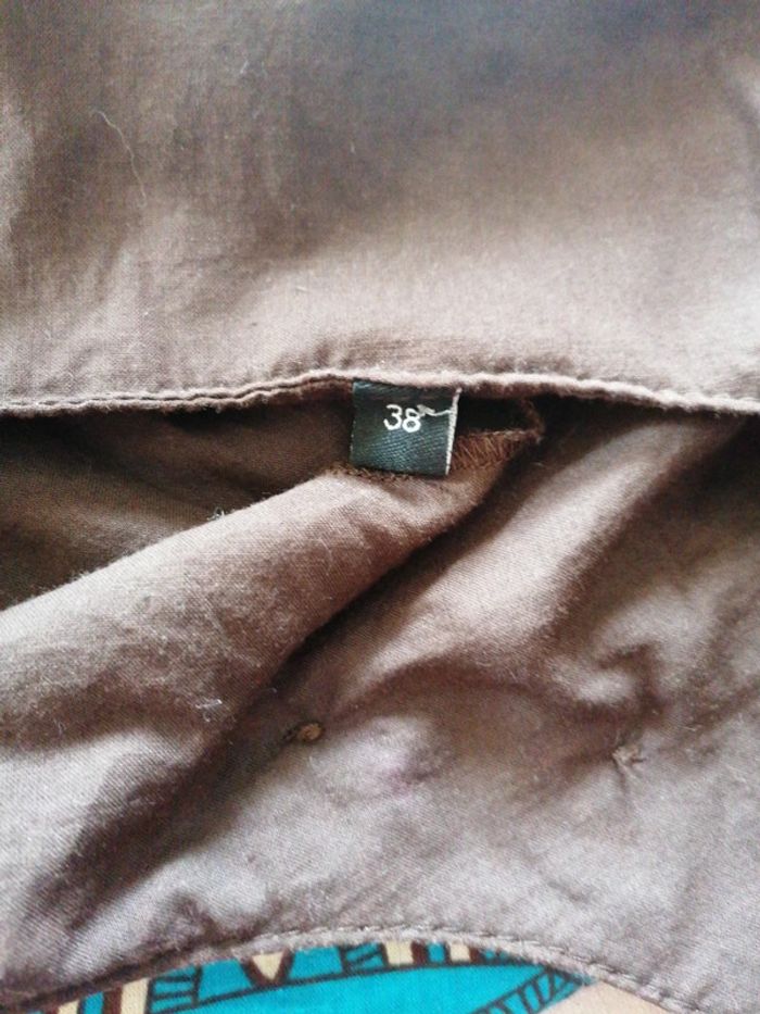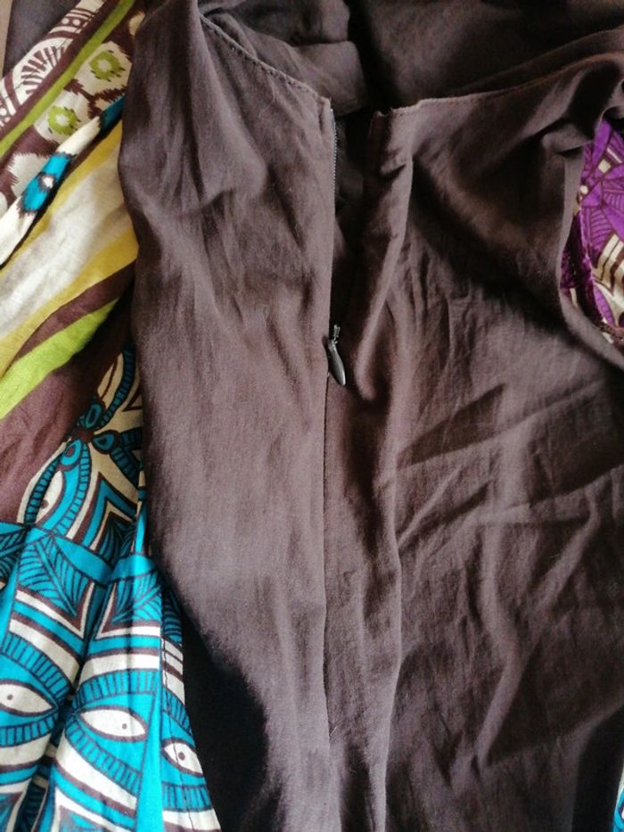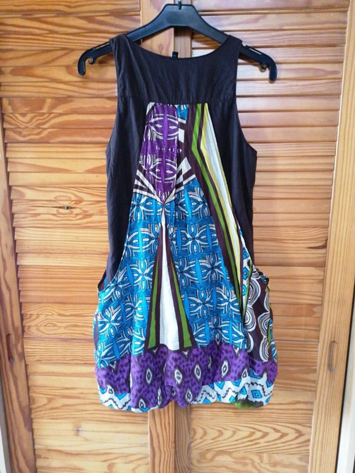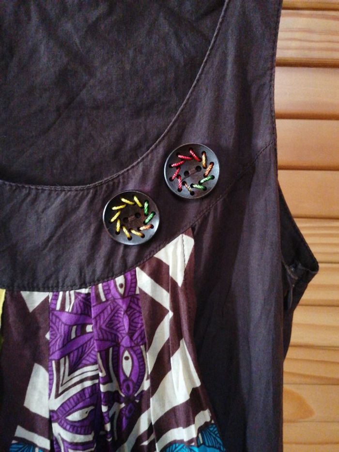 Robe d'été taille 38 marron et multicolore Fermeture éclair sur le côté Élastiquée en bas Décorée de boutons sur le devant 100% coton Bien porté mais bon état #gwen89350taille38