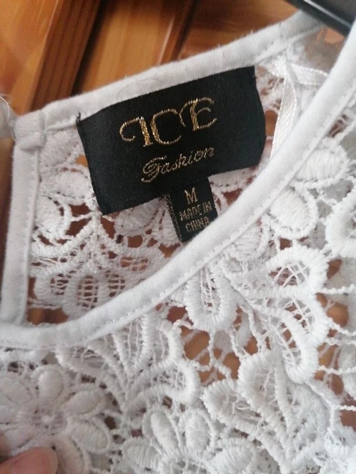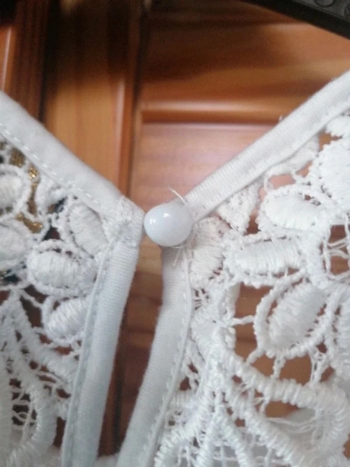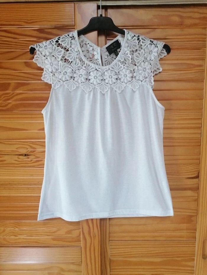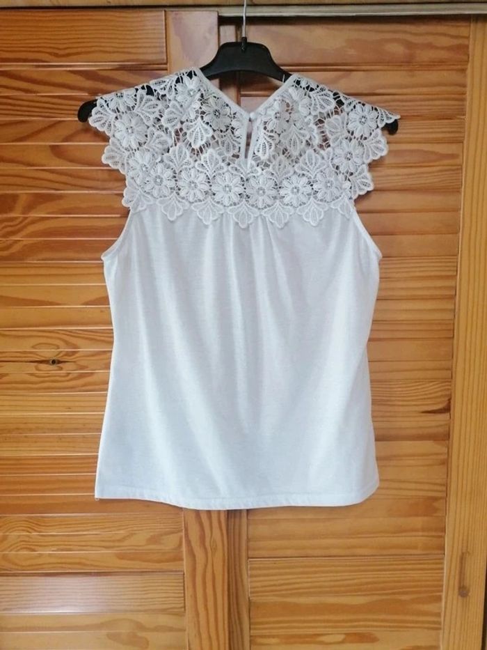 Top bohème taille M blanc à dentelle Petit bouton de fermeture au dos Légèrement transparent (photo) Bien porté mais bon état #gwen89350taille38