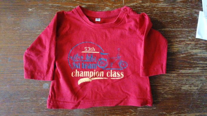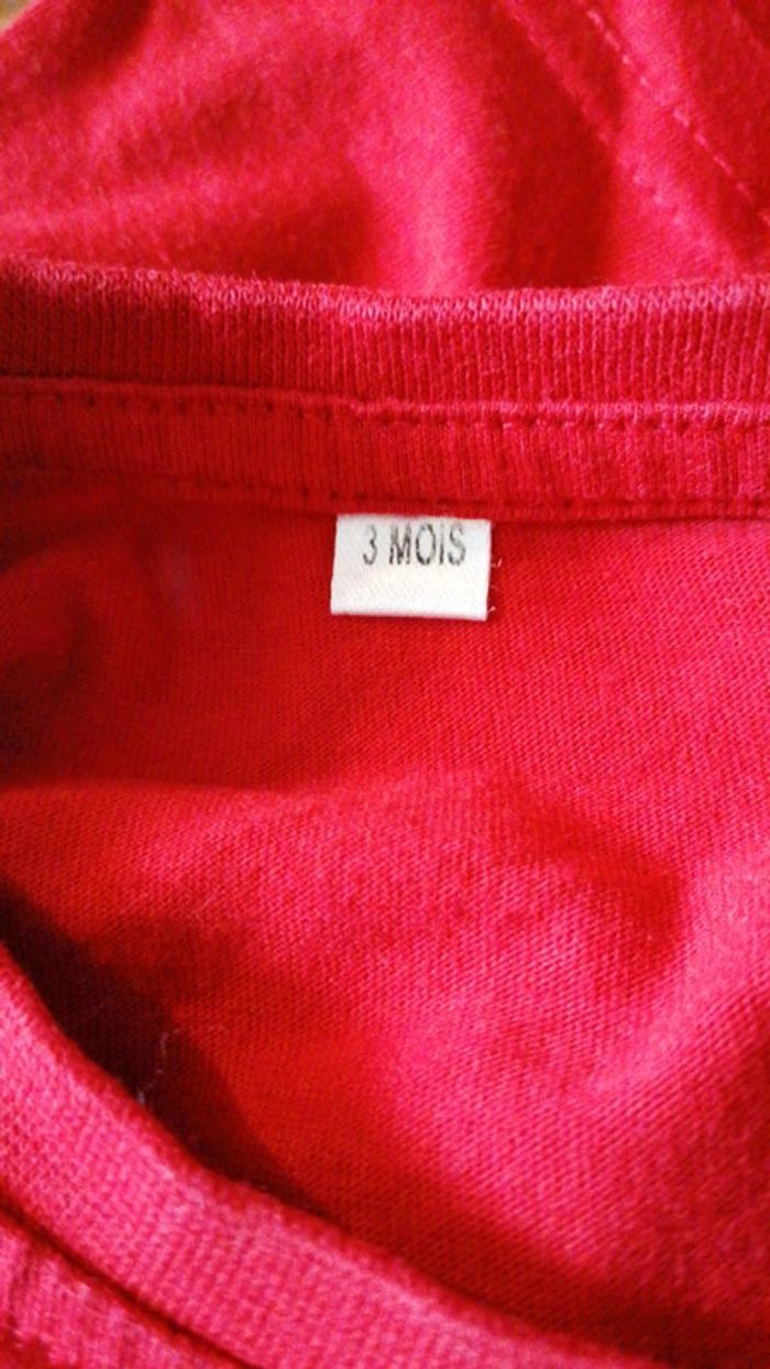 Tee shirt manches longues taille 3 mois rouge Fermeture par boutons pressions à l'épaule Bon état #gwen89350taille3/6mois #gwen89350taille0/3mois