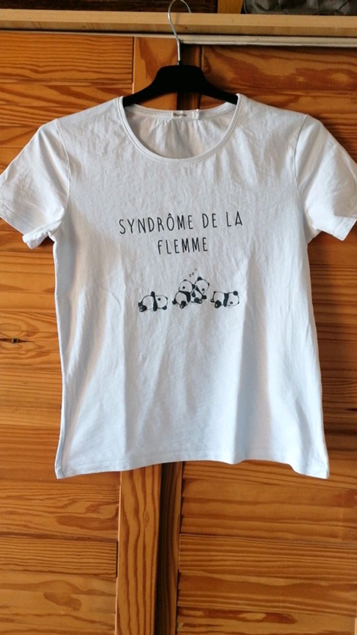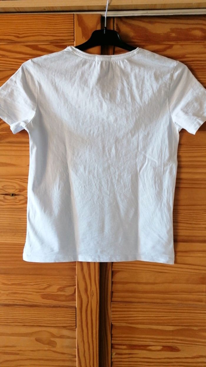 Tee shirt Byzzbee taille M blanc et logo noir Beaucoup porté Deux petites taches sur le devant (photos) et étiquette de composition coupée #gwen89350taille38