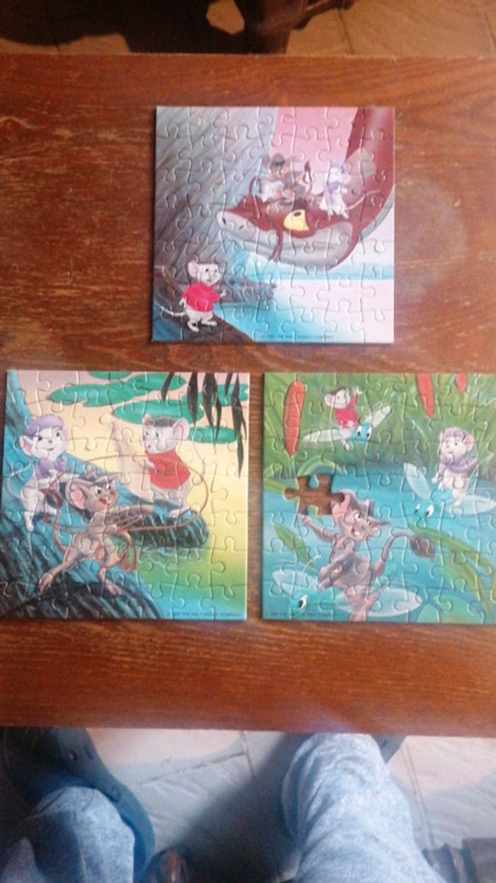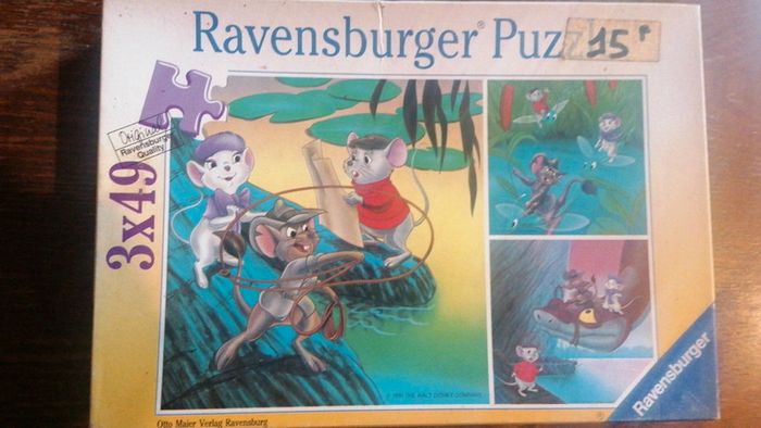 Boîte de 3 puzzles Disney (Bernard et Bianca) 3 puzzles de 49 pièces Très souvent utilisé donc comporte des défauts : manque une pièce, quelques pièces abîmées mais ne gêne pas pour la construction, boîte abîmée Article qui a fait plusieurs générations #gwen89350jouets