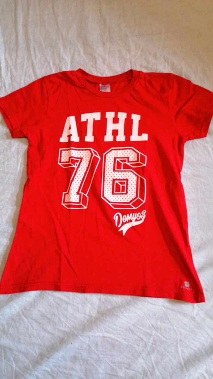 Tee shirt Domyos taille 10 ans rouge écriture blanche Bien porté mais bon état Étiquette de composition coupée #gwen89350taille10ans