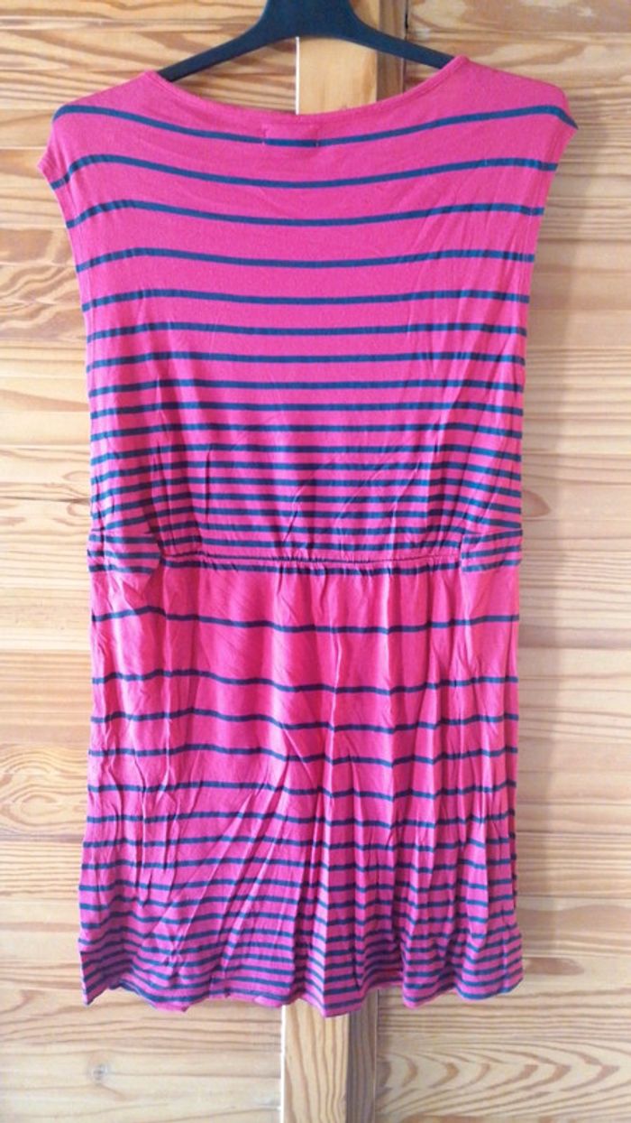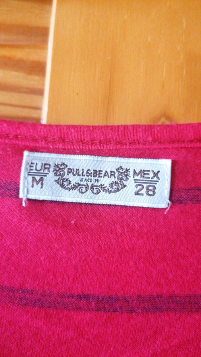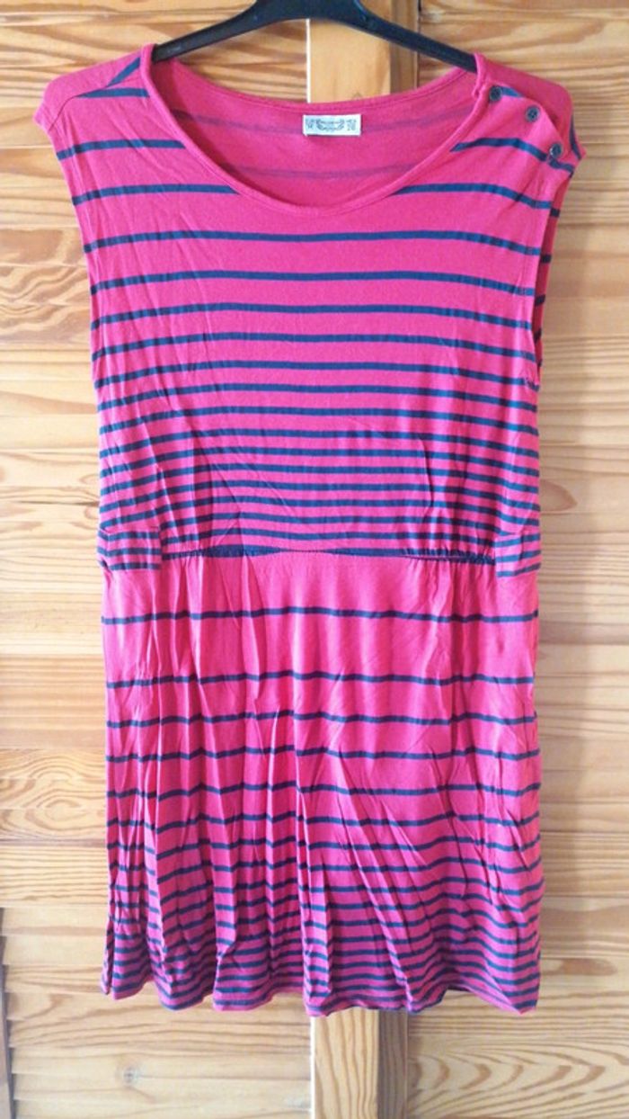 Robe légère Pull & bear taille M rouge rayée noire... Boutonnière à l'épaule... Matière tee shirt... Déjà bien portée... L'élastique de taille à laché... Mais peux se ceinturer avec un lacet ou une ceinture #gwen89350taille38