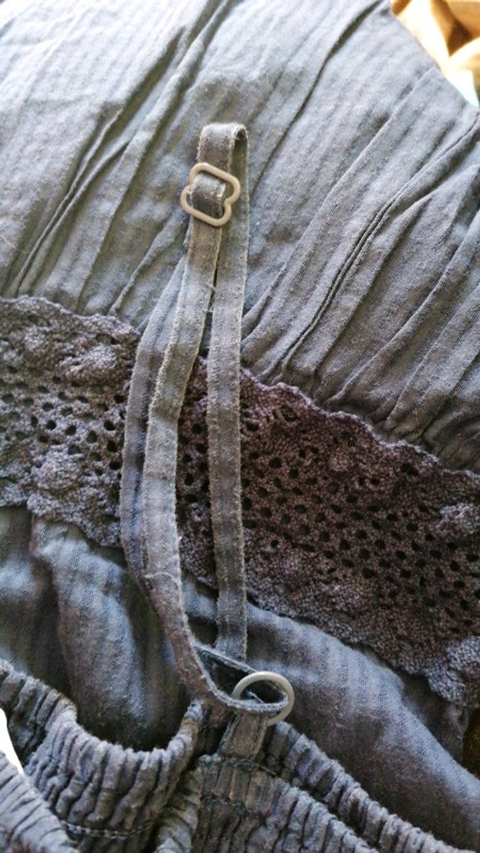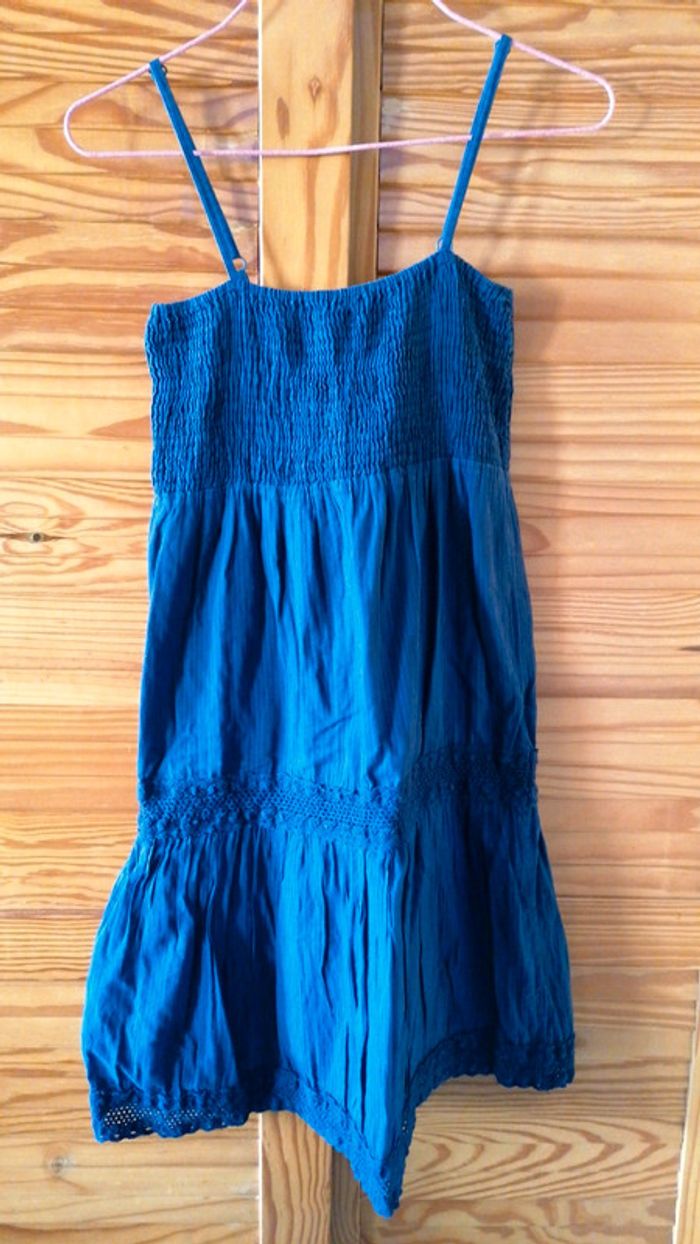 Robe Etam taille 38 marine rayée... Élastiqué à la poitrine et ajourée à certains endroits mais doublée... Réglable aux bretelles... Bien portée couleur un peu passée et étiquette de composition effacée #gwen89350taille38
