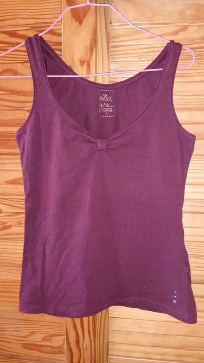 Débardeur Etam taille S bordeaux... Froncé à la poitrine et strass en bas à la taille... Bien porté mais bon état #gwen89350taille36