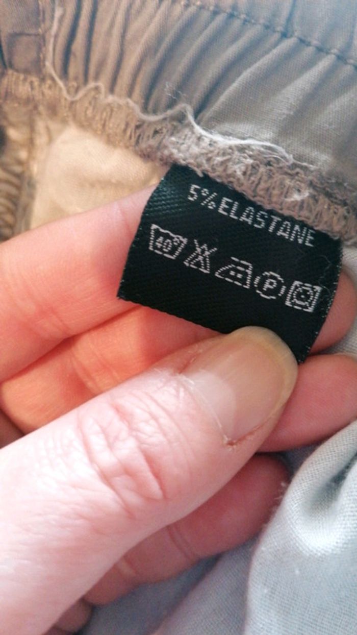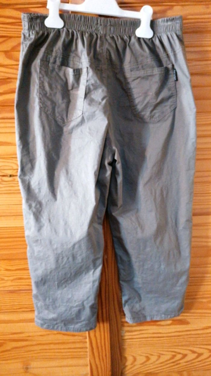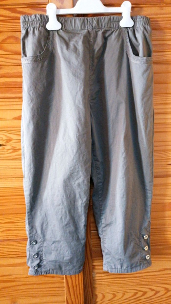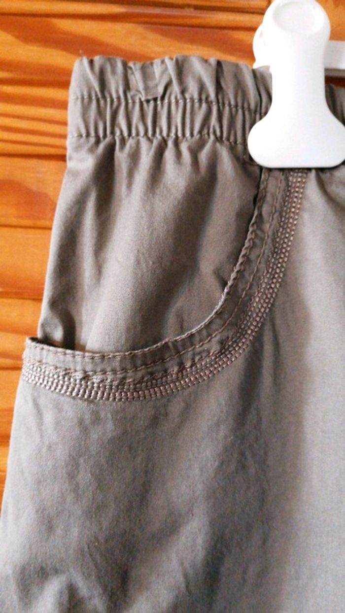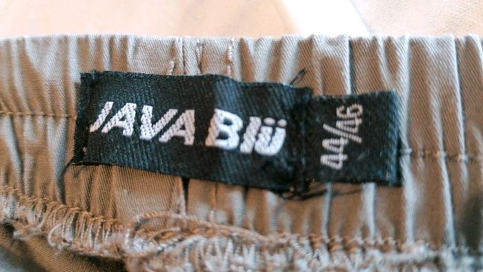 Pantacourt Java blü taille 44/46 kaki clair... À enfiler avec taille élastiquée... Très confortable... Poches latérales et à l'arrière... Boutonnières décoratives en bas des jambieres... Bien porté mais bon état #gwen89350taille44