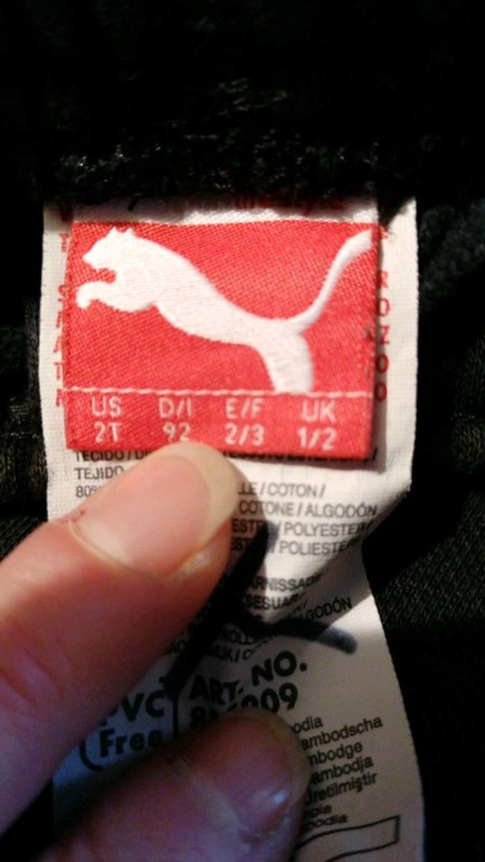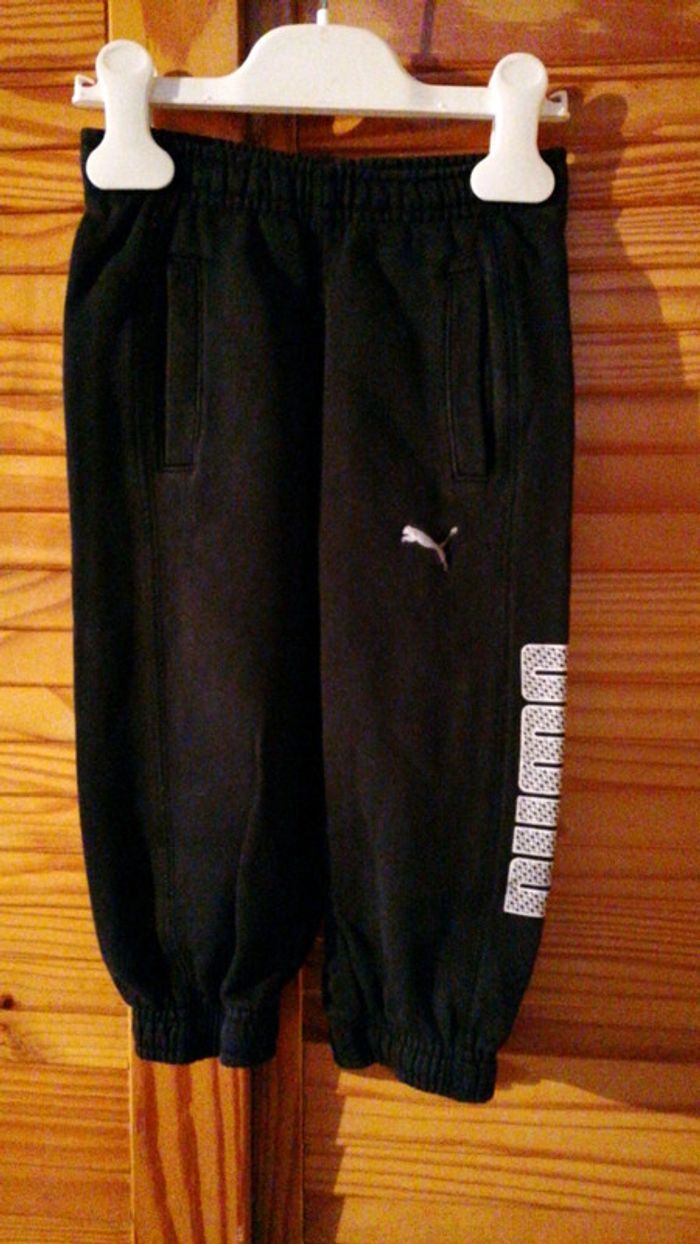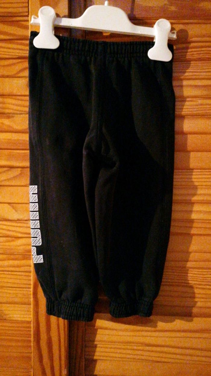 Jogging Puma taille 2/3 ans noir... Lacets à la taille et élastiqué aux jambieres et à la taille... Étiquette avec une croix dessus... Déjà bien porté mais bon état #gwen89350taille24/36mois