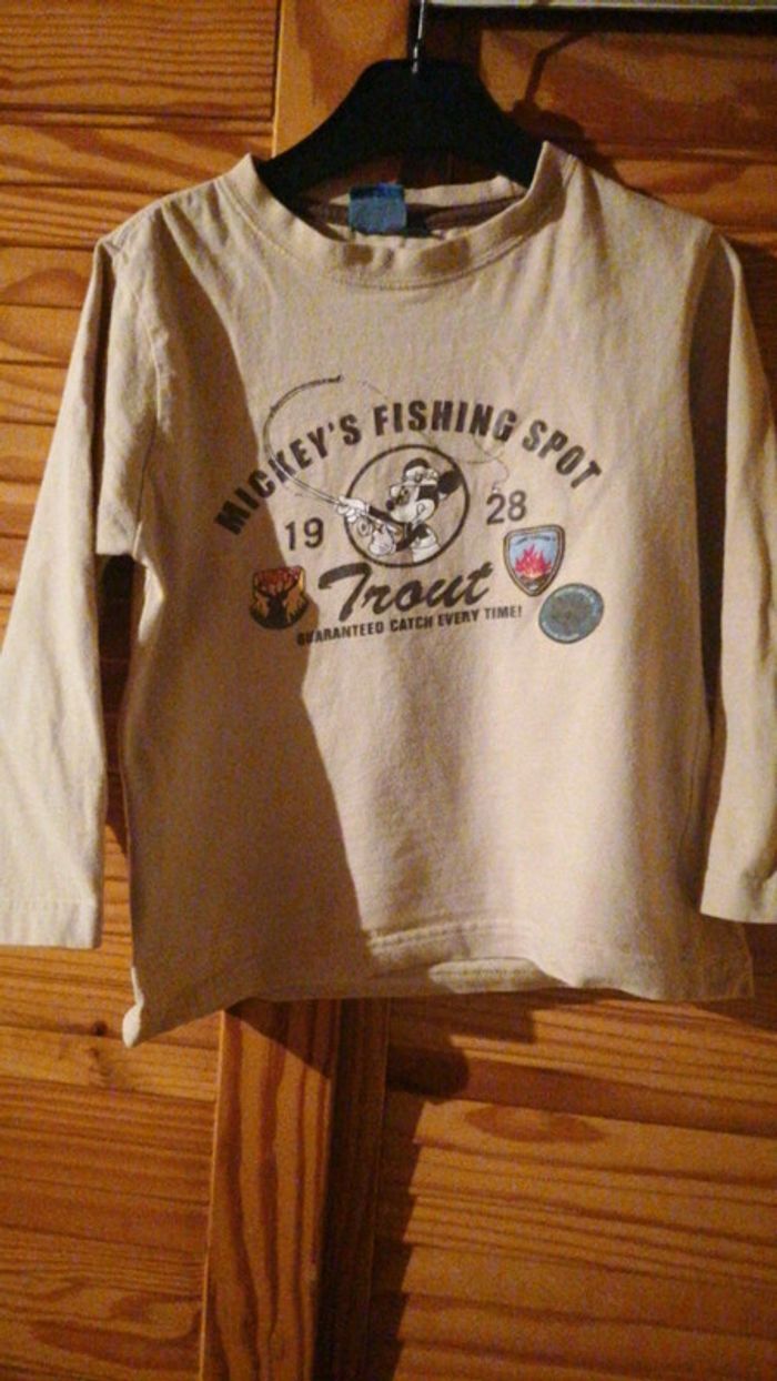 Tee shirt manches longues Disney Mickey taille 6 ans marron clair... Bien porté donc le dessin est un peu abîmé #gwen89350taille6ans