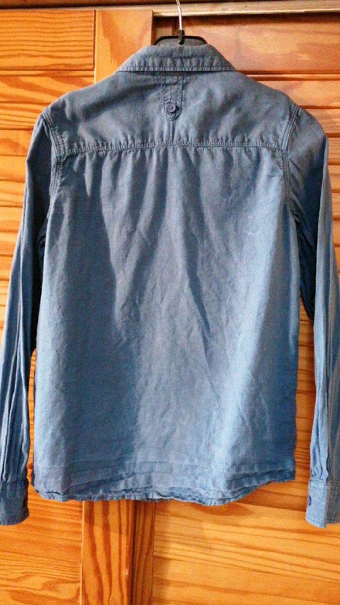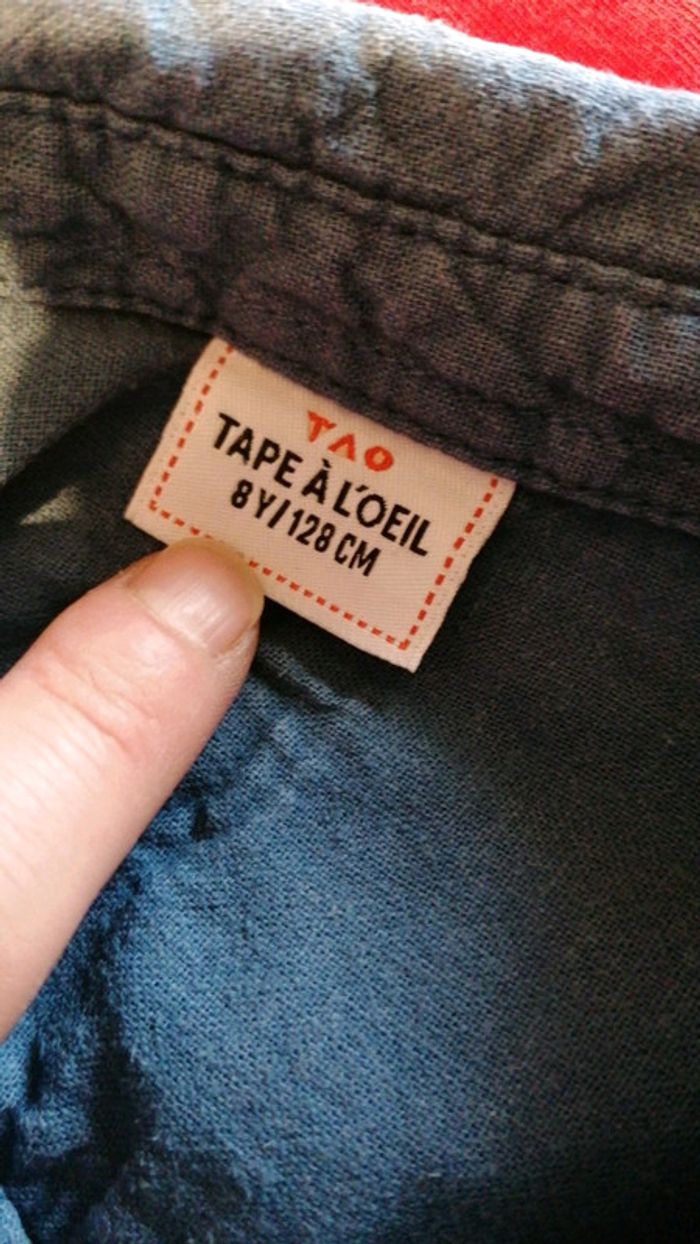 Chemise Tape à l'œil taille 8 ans bleu... 45% coton et 55% lin... Petit détail en bas... Boutonnière à l'avant et aux manches... Bien portée... Étiquette légèrement abîmée et bouton de rechange #gwen89350taille8ans