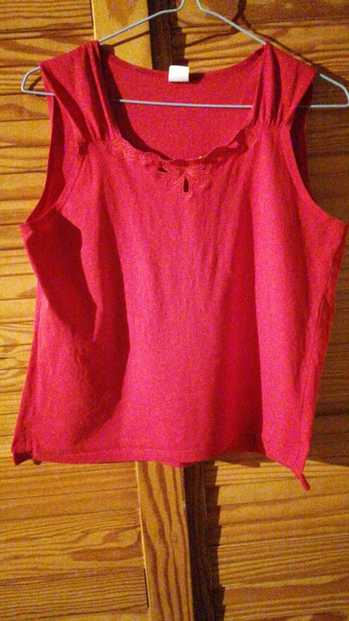 Débardeur rouge taille 42/44 court... Détail au décolleté et fronces vers les épaules #gwen89350taille42 #gwen89350vintage
