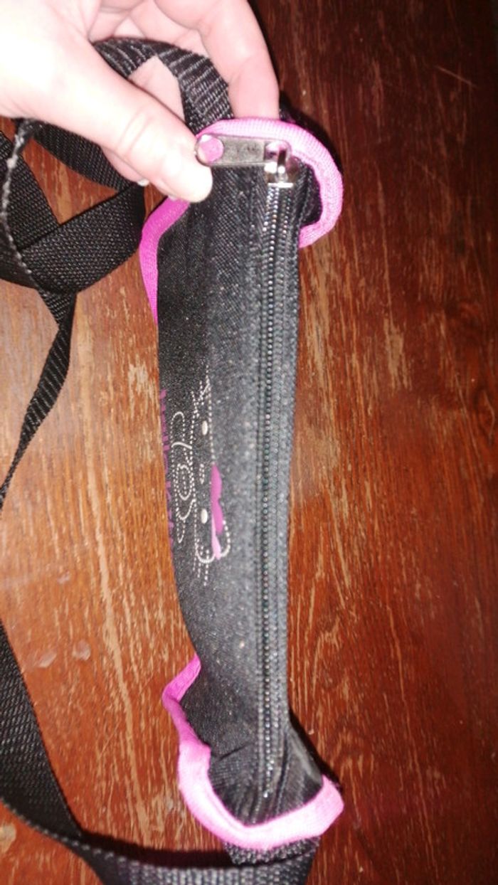 Besace hello kitty noire et rose... Taille 24 cms de large et 18 cms de haut... Fermeture éclair sur le dessus #gwen89350accessoires