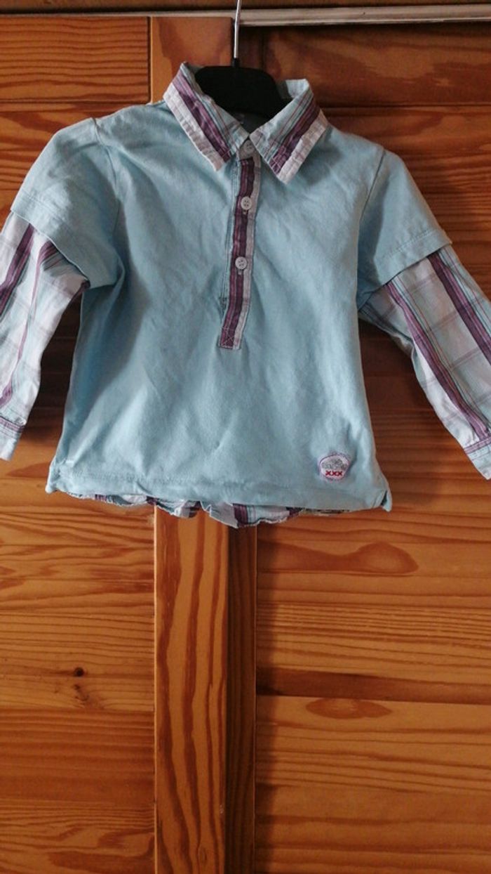 Tee shirt manches longues verbaudet taille 36 mois... Empiècement chemise... Boutonnière à l'avant... Turquoise clair #gwen89350taille24/36mois