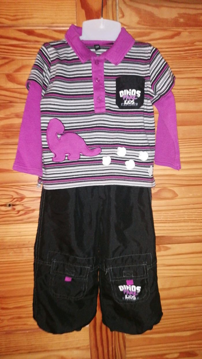 Ensemble noir et violet avec détails dinosaure taille 23 mois... Comprenant un tee shirt manches longues avec boutonnière et un pantalon élastiqué à la taille #gwen89350taille18/24mois