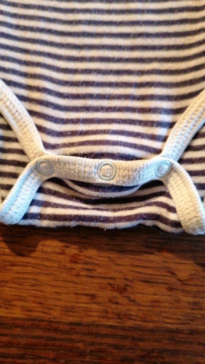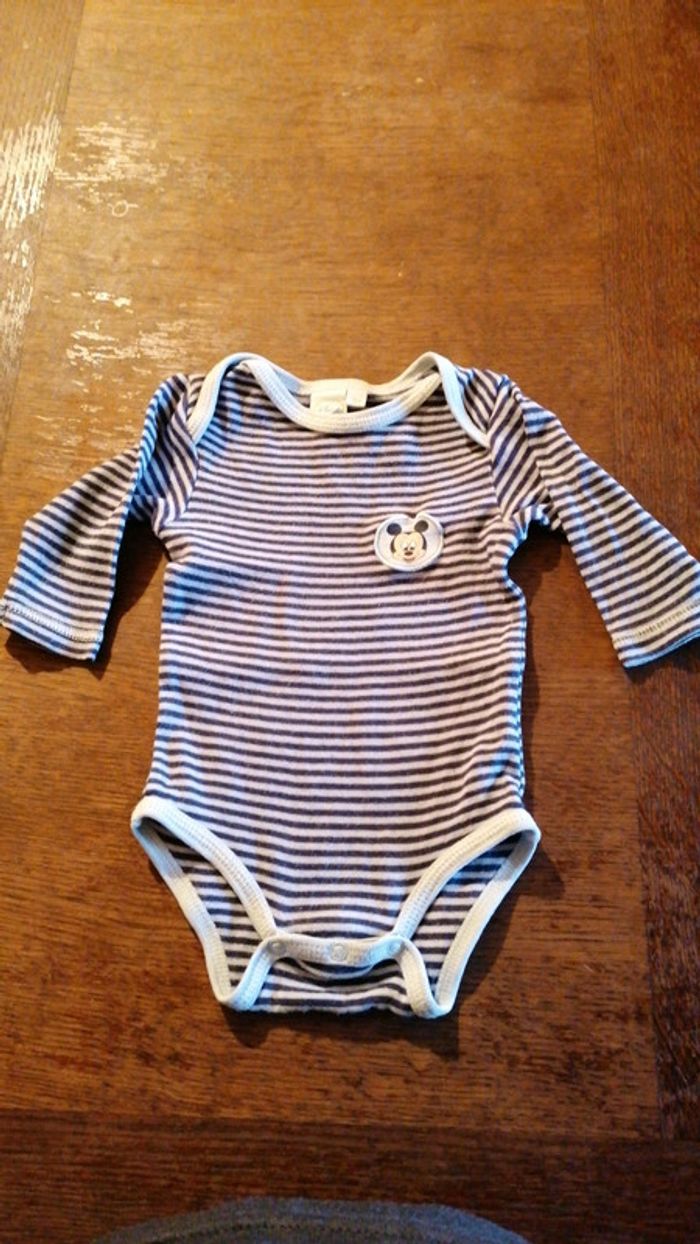 Body manches longues Disney taille 3 mois...Marine et bleu clair... Fermeture par boutons pressions à l'entre jambes... Logo un peu rayé #gwen89350taille0/3mois #gwen89350taille3/6mois
