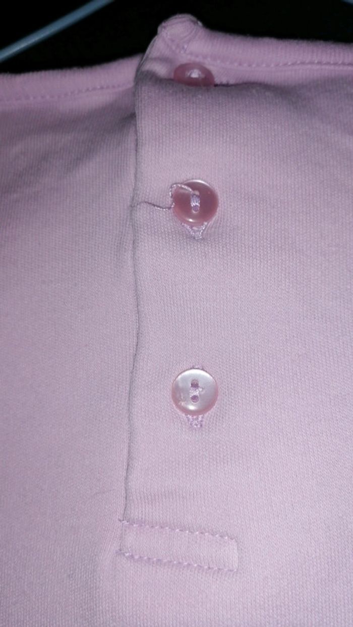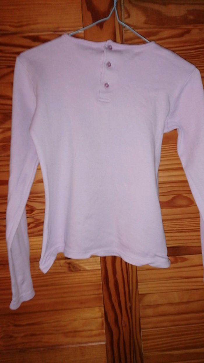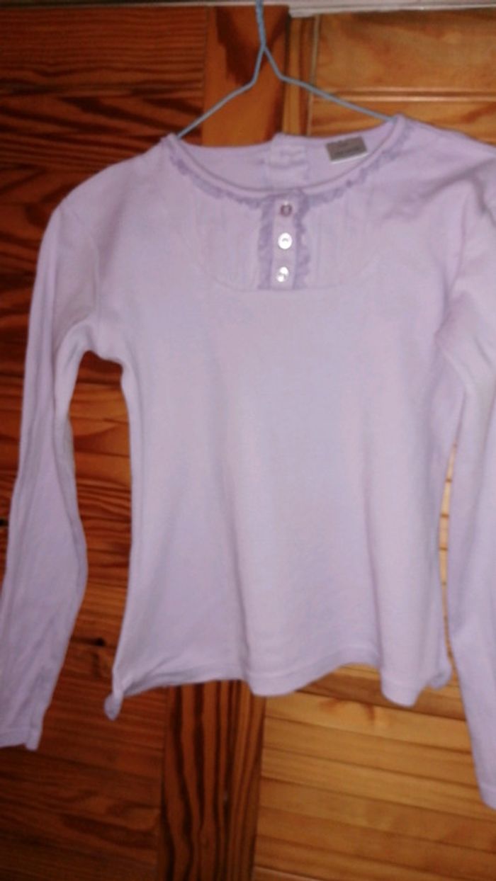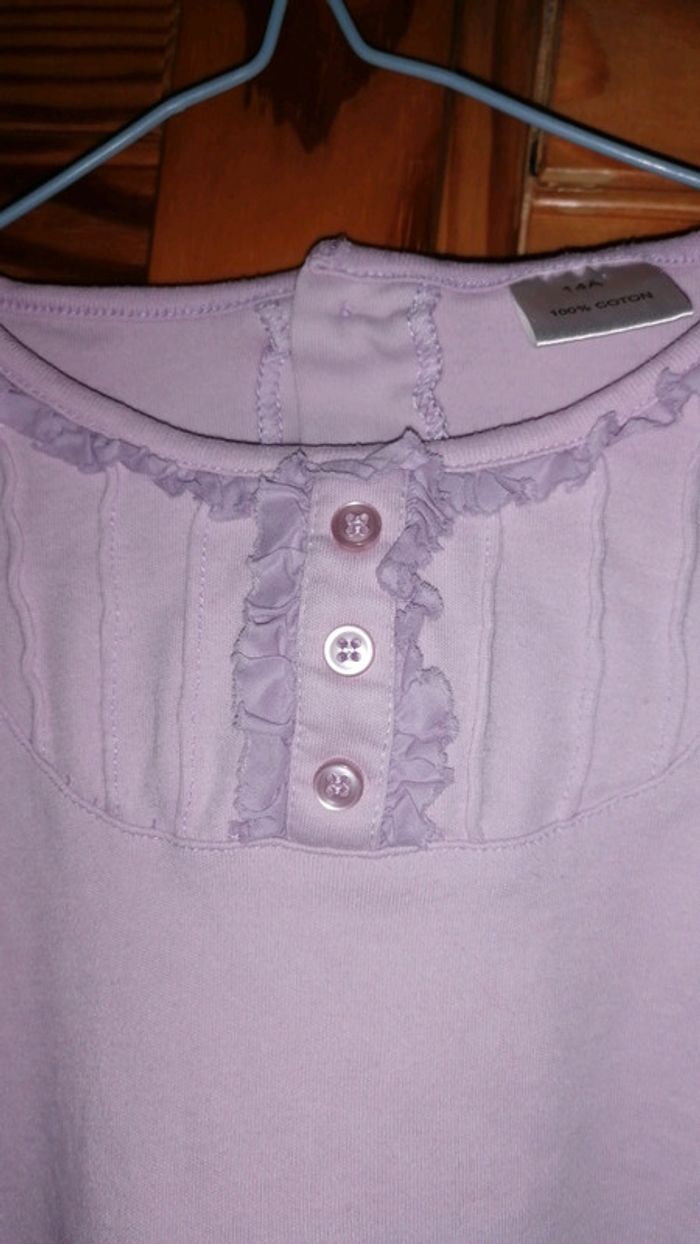 Tee shirt manches longues mauve taille 14 ans... Fausse boutonnière à l'avant et fermeture par boutons à l'arrière