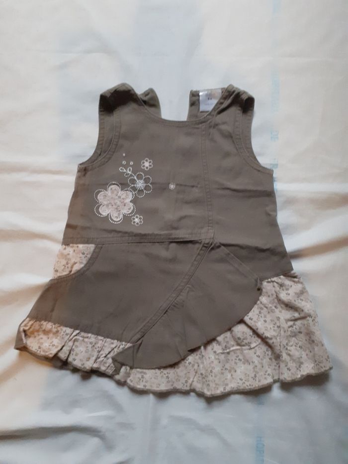 Robe marron motif fleurs avec empiècement en velours côtelé à fleurs 6 mois