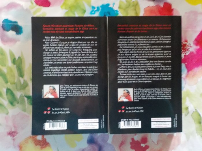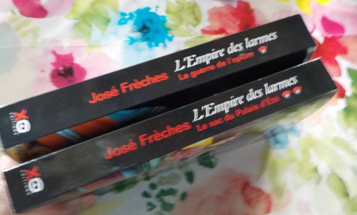 L'EMPIRE DES LARMES T1 : LA GUERRE DE L'OPIUM T2 : LE SAC DU PALAIS D'ETE de José FRECHES Ed. XO Bon état, une marque de pliure sur la 1ère de couverture du tome 1 Pékin, 1847. La Chine, cet empire sublime et mystérieux, est en train de mourir. Pour l’asservir, Français et Anglais déversent sur elle un poison funeste, l’opium, par cargaisons entières. Et tout en affamant son peuple, ils pillent ses merveilles ancestrales. Un enfant, un fils caché de l’empereur Daoguang, peut changer le destin de l’empire. Il s’appelle La Pierre de Lune, et il est menacé de mort, poursuivi par le clan des très puissants eunuques. A travers toute la Chine, une traque impitoyable commence, où l’on rencontrera une danseuse contorsionniste, un chambellan corrompu, une jeune Londonienne, un prince Tang rebelle… Les destins des héros de José Frèches vont tisser la toile d’une histoire magnifique menée tambour battant, dans une Chine inconnue et absolument fascinante, ébranlée par l’Occident, mais qui ne demande qu’à s’adapter pour survivre et triompher...