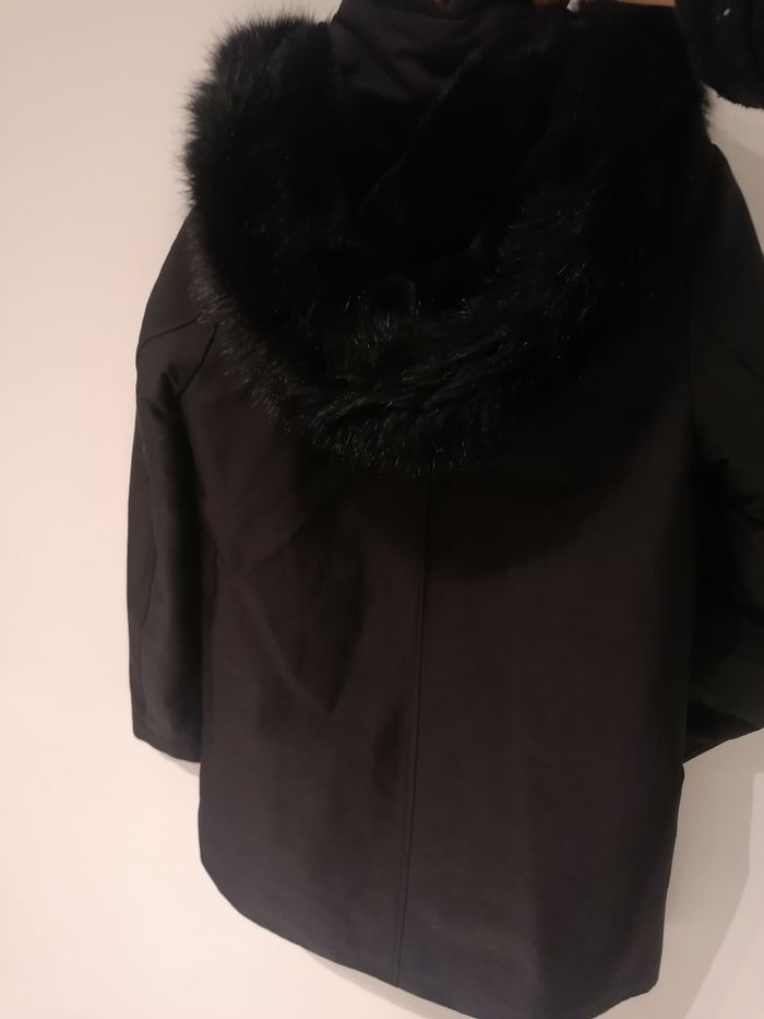 Jolie parka, la fourrure sur la capuche est amovible. Fourrure a l'intérieur et dans la capuche, quasiment pas portée.