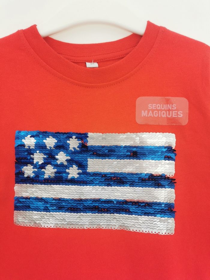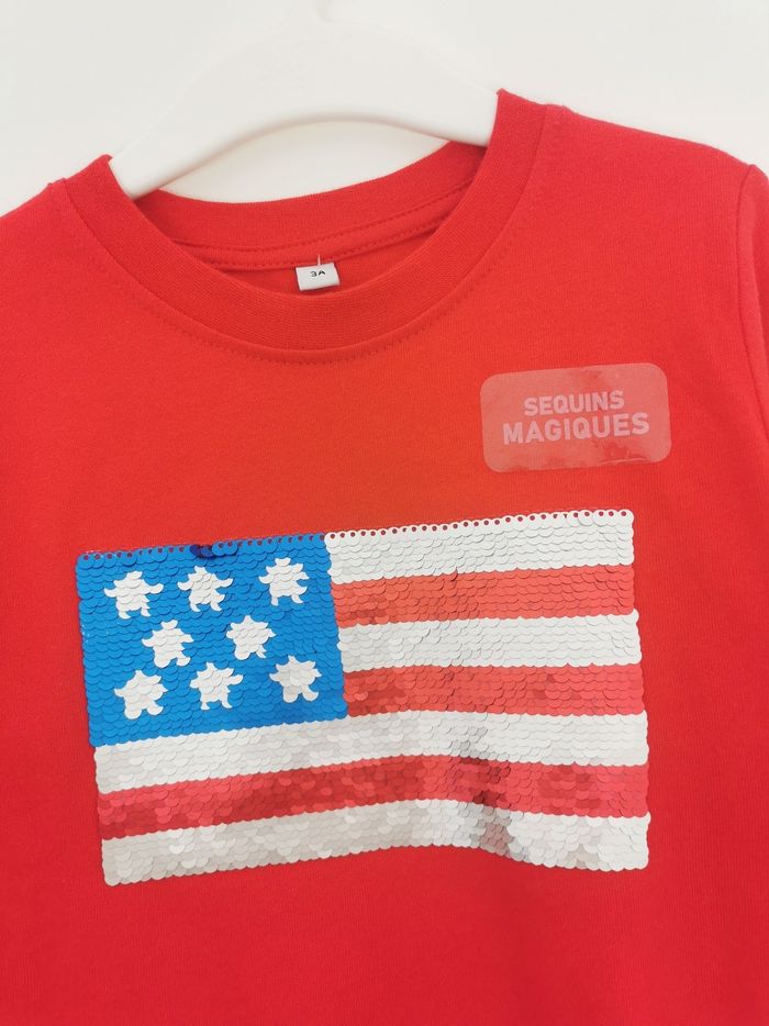 Tee-shirt rouge à sequins magiques drapeau Usa 3 Ans - photo numéro 2