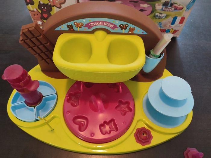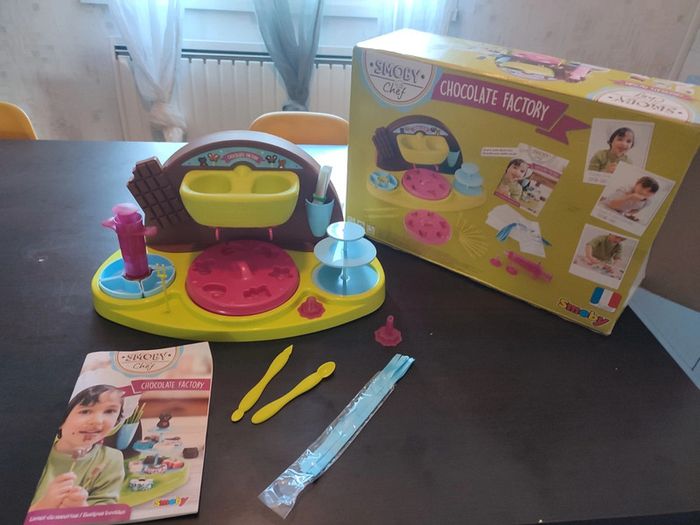 Jeu CHOCOLATE FACTORY La fabrique de chocolat) by SMOBY Comprend: La fabrique Nombreux ustensiles (moules, présentoir, rubans, sachets, ...) Livre de recettes A PARTIR DE 5 ANS TRES BON ETAT ( juste la boite un peu abimée) Allez voir mes autres ventes!