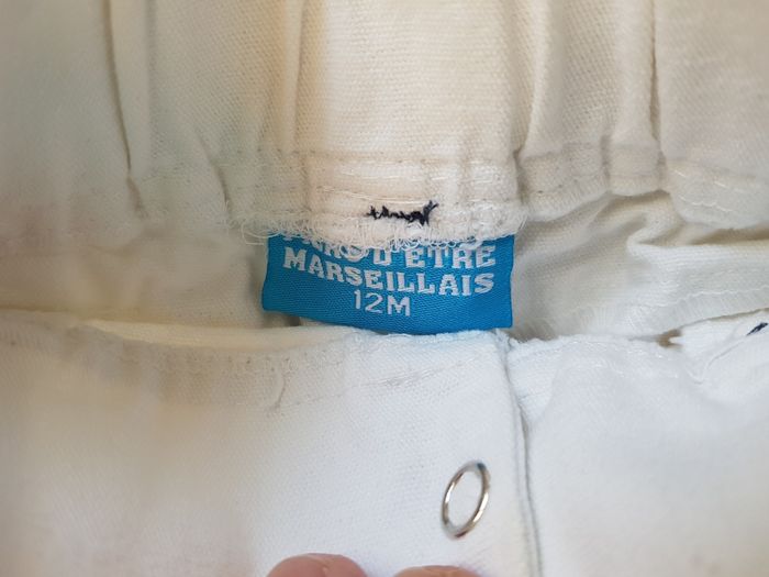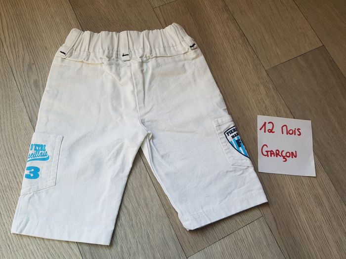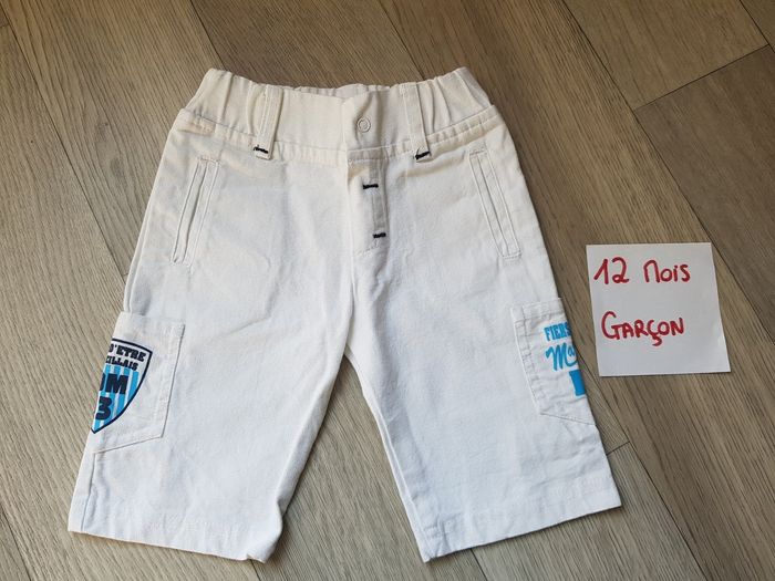 Bermuda non ajustable à la taille, blanc et bleu, 100% Coton 12 mois / FIERS D'ÊTRE MARSEILLAIS / Garçon Très bon état