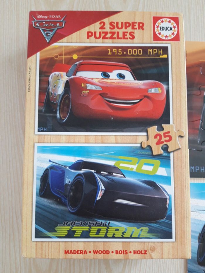 Puzzle 2 × 25 pièces (complet) Cars Educa Quelques petites traces d'usure mais reste en très bon état (voir photos) Les pièces sont en bois