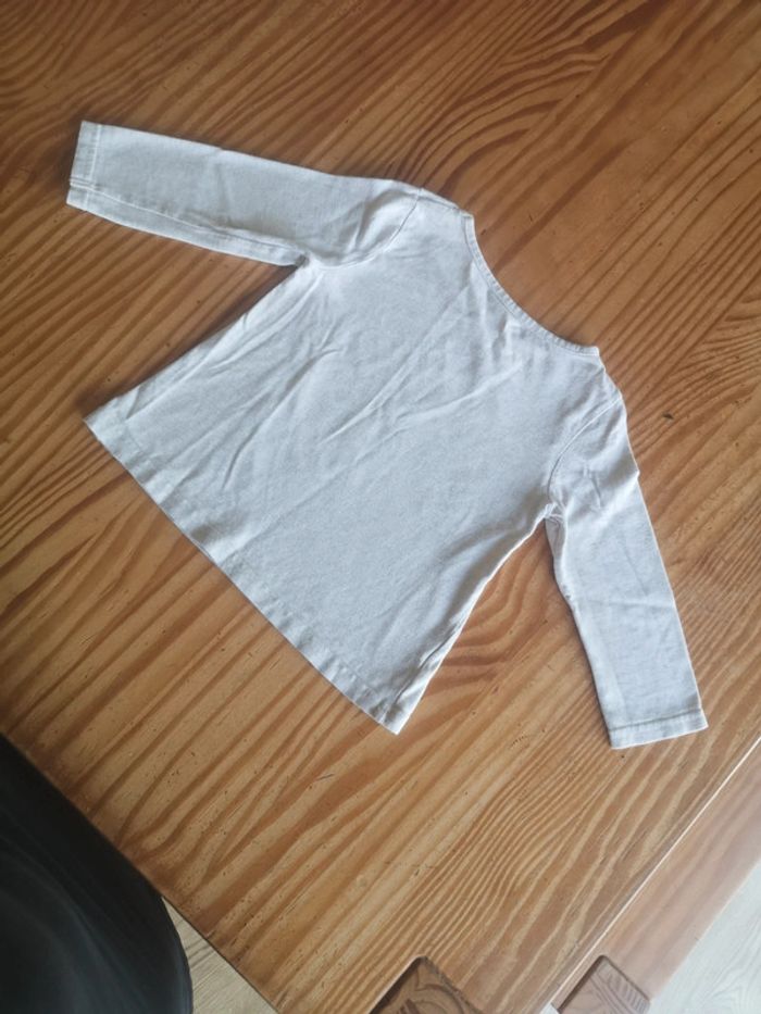 Tee-shirt manches longues gris clair avec zèbre gris paillettes argenté, fille 3 ans