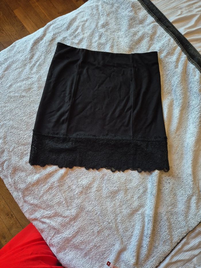 petite jupe noire taille s droite extensible dentelle en bas élastique à la taille #soph547femmeS #soph547femme36