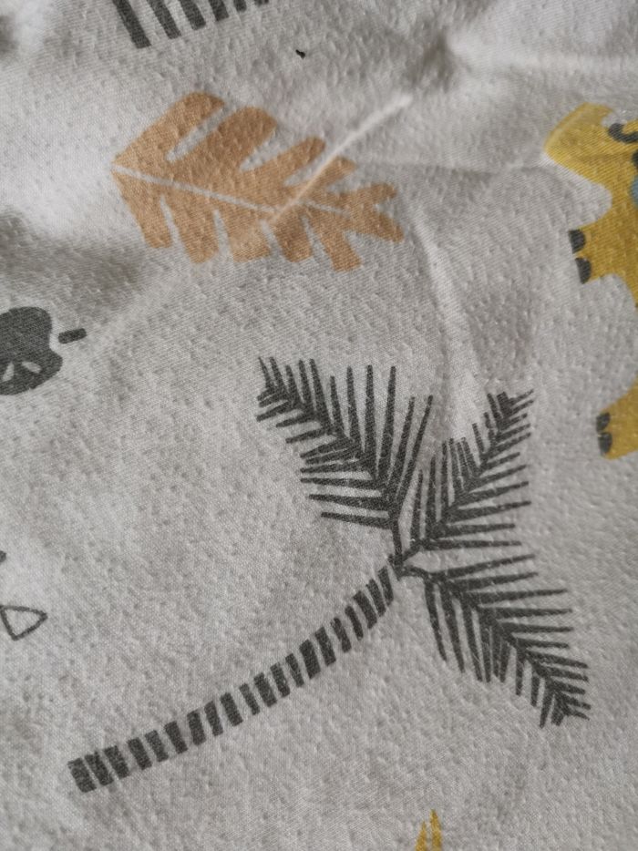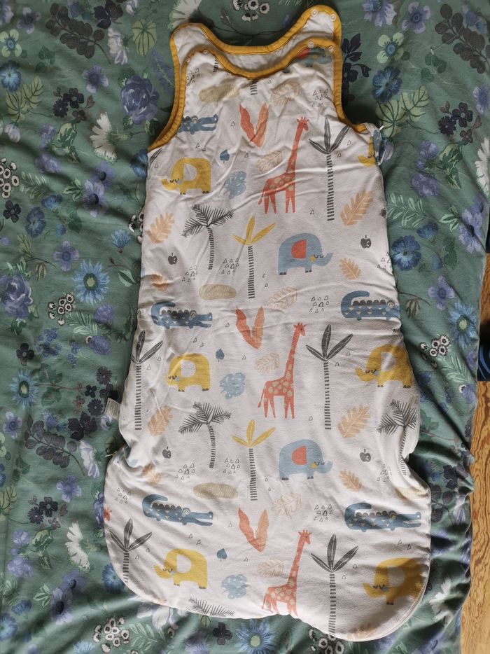 Un peu boulochée mais encore en Tres bon état. 100% coton. S'ouvre par le haut et par le bas.