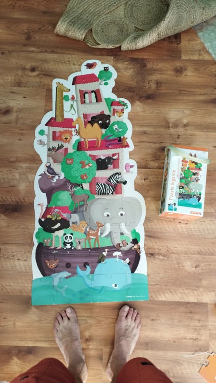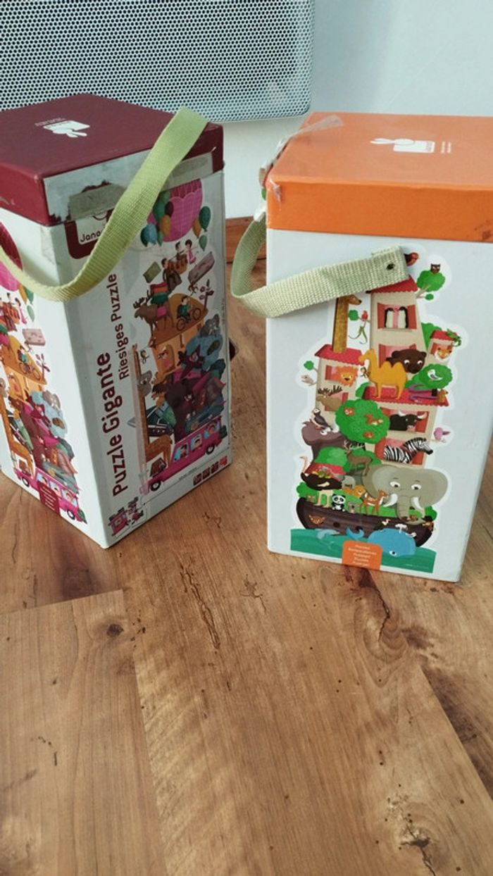 2 puzzles géants de 39 pièces Toutotour et Arche de Noé Bon état général : boîtes moyennes et réparées,puzzles en très bon état général sauf quelques accros sur des angles, voir photos Age conseillé 4-7 ans mais nous l'avons donné à notre fille de 2 ans et demi sans problème J'ai d'autres puzzles enfants 2 3 et 4 ans de chez Janod Djeco ravensburger auzou etc a vendre, allez voir mon dressing
