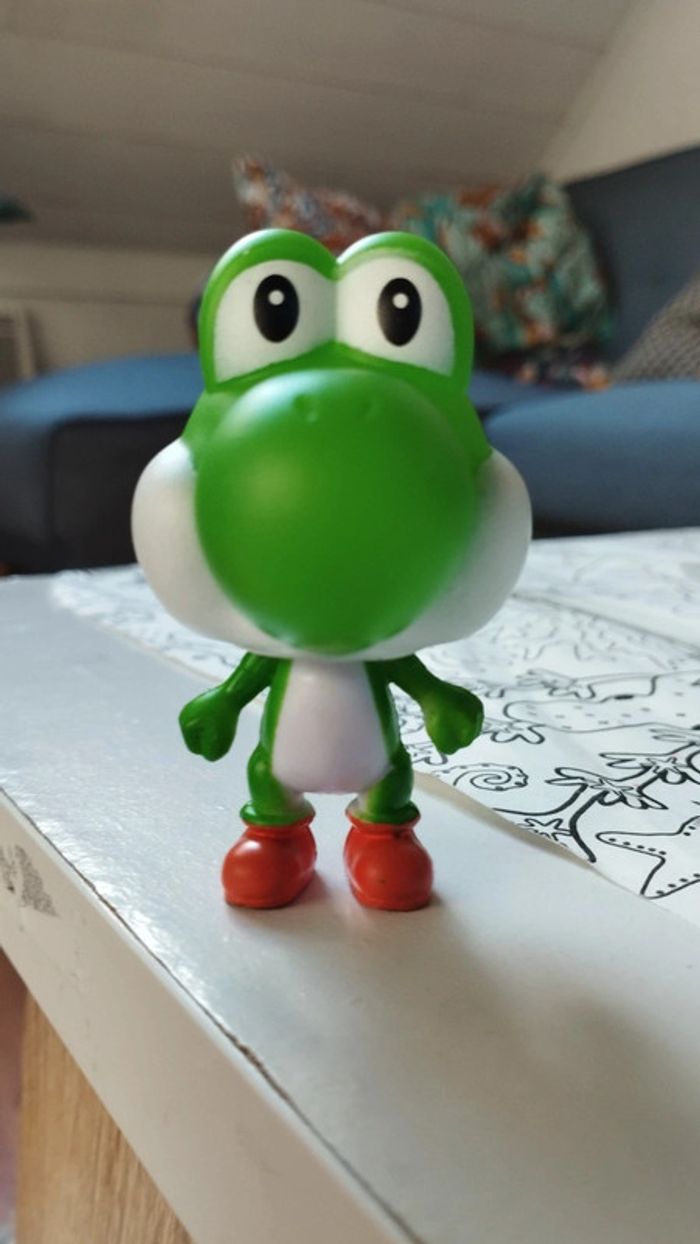 1 petite figurine cartoon de Yoshi Sous blister emballée 7-8 cm environ. Grosse tête J'ai également tout un tas de goodies Nintendo comme des figurines des peluches des porte clefs des Legos Mario Luigi Bowser donkey Kong Yoshi princesse Toad etc etc Si vous aimez les petits objets de sport de ce style, j'ai aussi l'équivalent en football et basketball NBA ainsi que des petits legos de football et de basketball Parfait pour cadeau de Noël sympa ou surprise de calendrier de l'Avent - Weihnachtsgeschenk oder Adventskalender - Regalo de Navidad o calendario de adviento - Regalo di Natale o calendario dell'avvento - Kerstcadeau of adventskalender