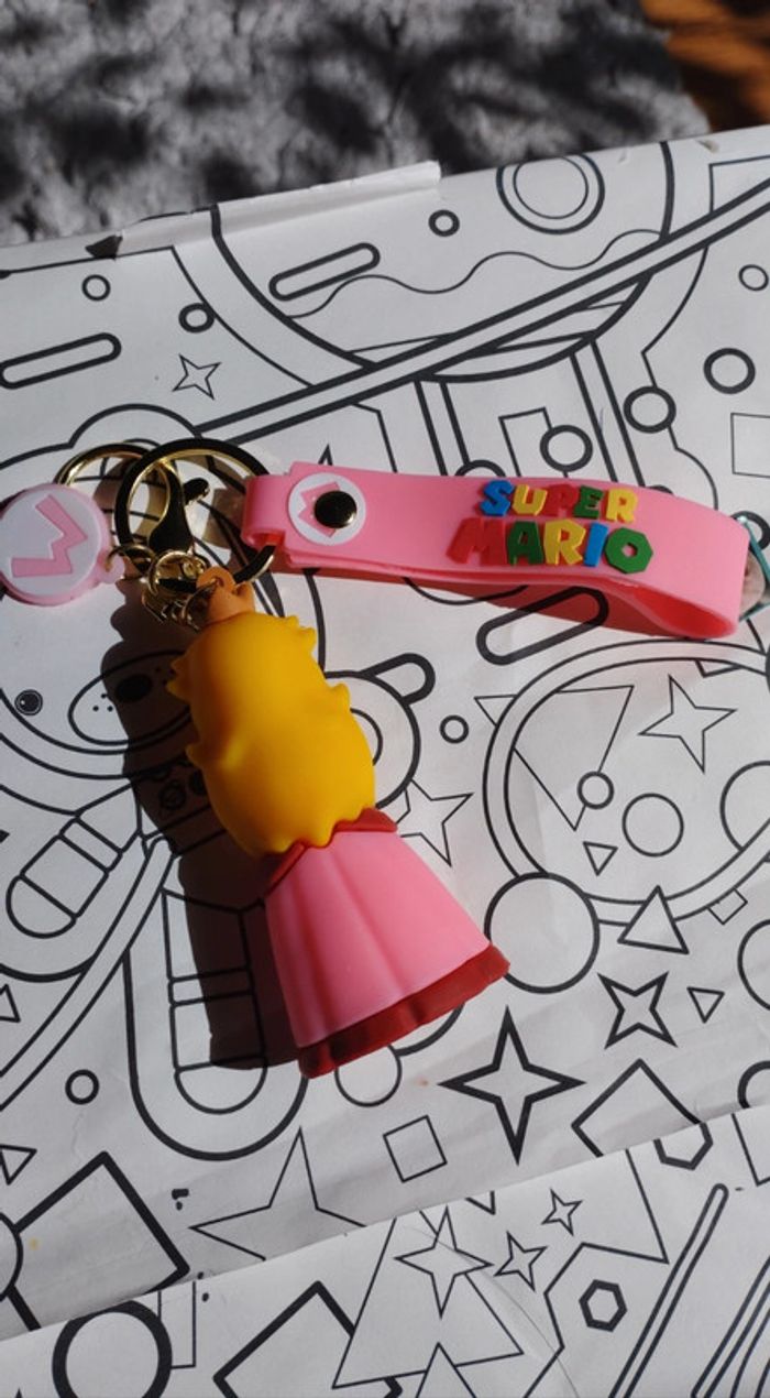 Neuf emballé. Porte clés neuf de princesse Peach monde de Nintendo Taille : une paume de main environ J'ai d'autres goodies Nintendo a vendre : autres porte clés, personnages Lego, casquettes et peluches Mario Luigi Wario Waluigi princesse Toad donkey Kong Bowser Yoshi etc
