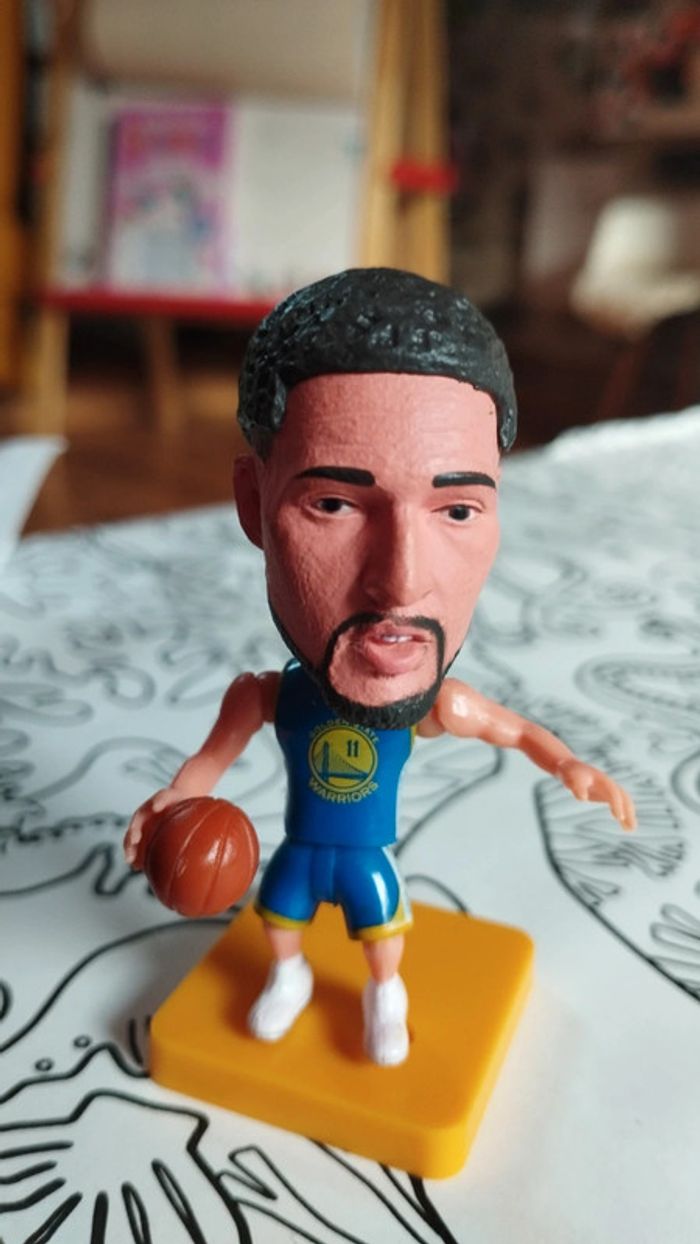 Petite figurine Basket NBA neuve dans emballage Klay Thompson - golden state warriors maillot bleu Figurine 7cm environ Sur socle. Joueur articulé, avec ballon fixé dans la main J'ai quelques autres joueurs comme LeBron James, Kobe Bryant, Russell westbrook, Carmelo Anthony, Anthony Davis, Jimmy Butler, James Harden, Dwyane Wade, Giannis antetokounmpo, Stephen Curry, Kevin Durant, Klay Thompson, Luka doncic, porzingis, lillard Zion Williamson etc, et d'autres franchises comme Miami Heat golden State warriors Brooklyn nets Houston Rockets los Angeles Lakers sans Antonio Spurs etc Regardez dans mon dressing Si vous aimez les petits objets de sport de ce style, j'ai aussi l'équivalent en basketball NBA ainsi que des petits legos de football et de basketball klein voetbalbeeldje - piccola statuetta di calcio - pequeña figura de fútbol Parfait pour cadeau de Noël sympa ou surprise de calendrier de l'Avent - Weihnachtsgeschenk oder Adventskalender - Regalo de Navidad o calendario de adviento - Regalo di Natale o calendario dell'avvento - Kerstcadeau of adventskalender