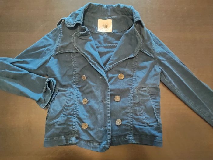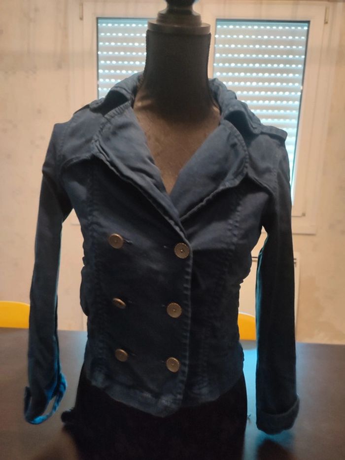Veste ZARA Jean Bleue marine Martingales sur les épaules Fermée par boutons Poches 98% Coton & 2% Elasthanne TAILLE S TRES BON ETAT Allez voir mes autres ventes!