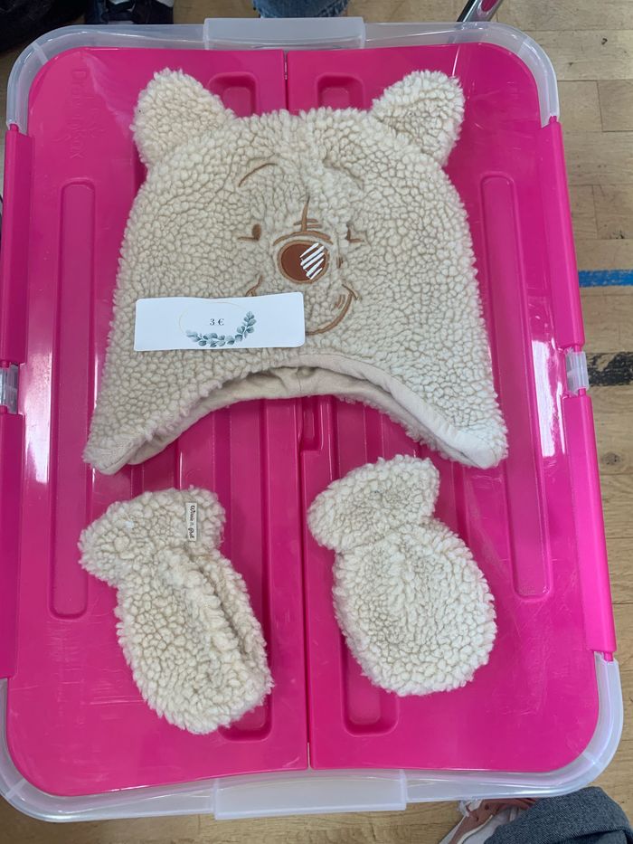 Bonnet Winnie l’Ourson + moufle ( jamais utilisé)