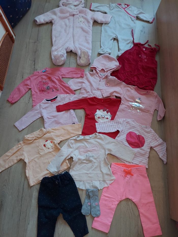 Lot 14 vêtements fille 6 mois tbe 1 combinaison tbe 1 grenouillère velours tbe 1 veste à capuche tbe 1 robe tbe 7 Tee-shirts ml ,5 en tbe, 2 en bon état 1 pantalon tbe 1 Jean souple réglable à la taille tbe 1 paire de chaussettes neuve Divers marque, Obaibi, Disney , Kitchoun, Les triplés, etc... #lilousab07bébéfille6mois